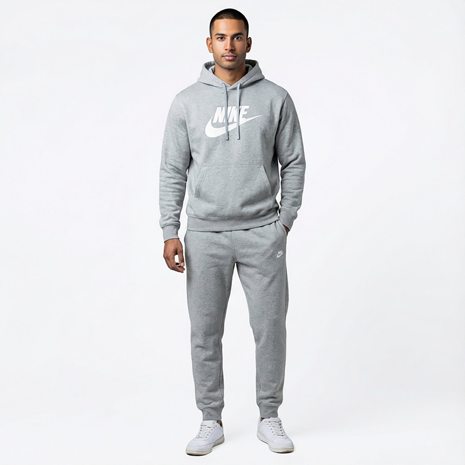 Stay casual in the Nike Men's Nike Club Joggers. Their body is made of 80% cotton and 20% polyester. The snap closure back welt pocket and hand pockets fit most phones, and their slightly tapered legs are finished with 3-inch ribbed cuffs. The standard fit feels relaxed through the seat and thighs.