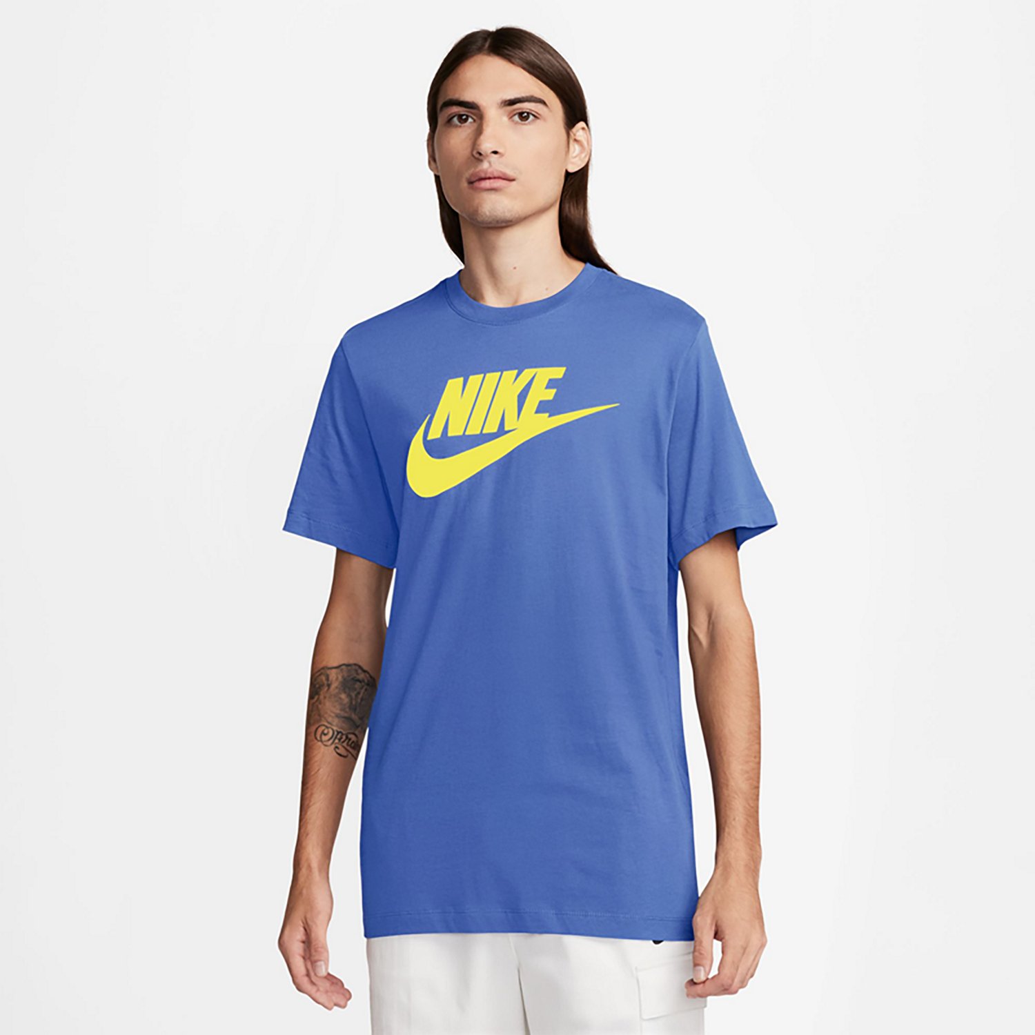 Take on the day in comfort and style when you sport the Nike Men's Nike Sportswear Icon Futura Short Sleeve T-shirt. The 100% cotton jersey fabric offers a soft, lightweight fit and feel for comfortable wear, while the logo graphic design printed on the chest adds a sporty appearance to your look.