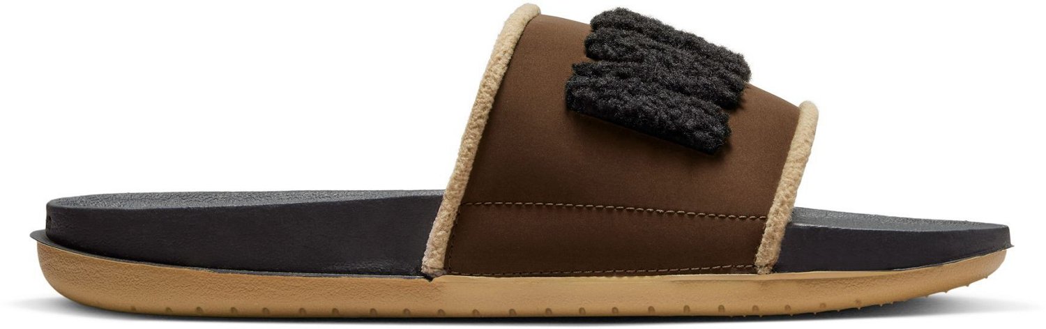 Put up your feet and relax after the big game with Nike Men's OffCourt SE Slides. Contoured footbeds and fleece-lined straps deliver a cozy and comfortable feel while outsoles feature pivot circles for extra traction and durability. A plush Nike logo shows your brand love.