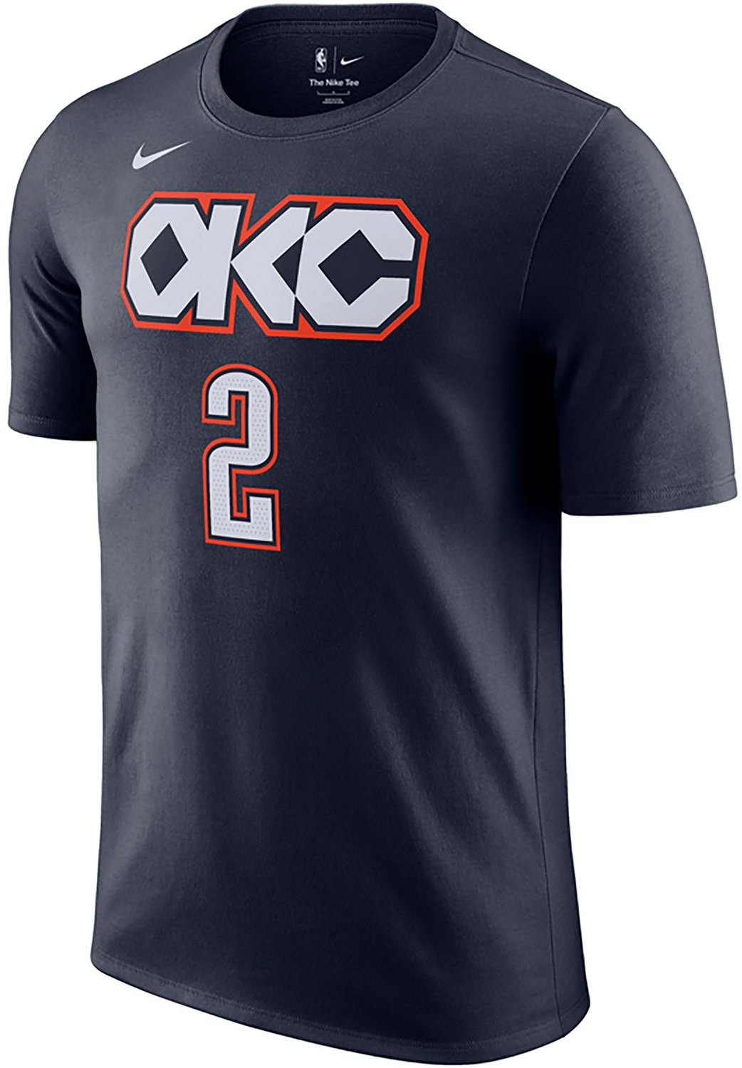 Rep your favorite player with the Nike Men's Oklahoma City Thunder Shai Gilgeous-Alexander #2 Essentials City Edition T-shirt. The cotton material provides a comfortable feel, while the team graphics show off your Thunder pride.