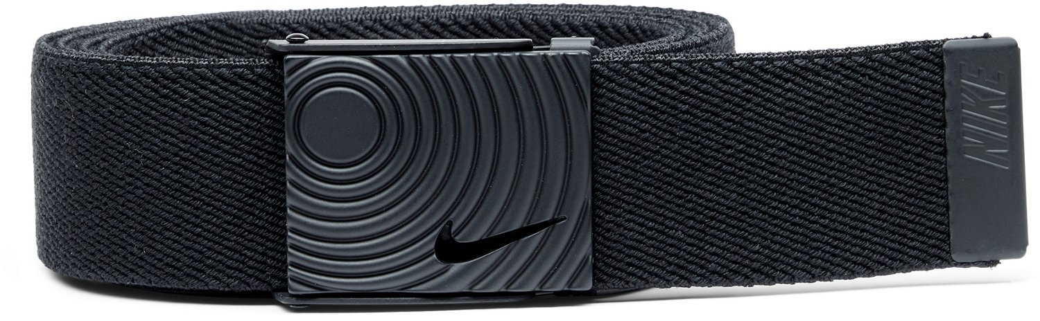 Secure your pants in style with the Nike Men's Outsole Stretch Web Belt. It is made of 80% polypropylene and 20% rubber. The plaque buckle has a matte finish, and its cut-to-fit design creates a customizable fit. The back of the buckle features a bottle opener.