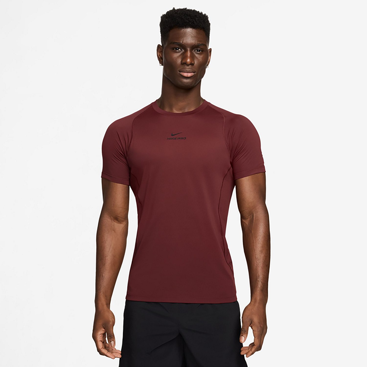 This Nike Men's Pro Training Dri-FIT Short Sleeve Top is built to handle tough workouts consistently, making it a valuable part of your wardrobe. It is made of 100% polyester for durability and softness, and the T-shirt features mesh panels on the back and sides to allow generous airflow.