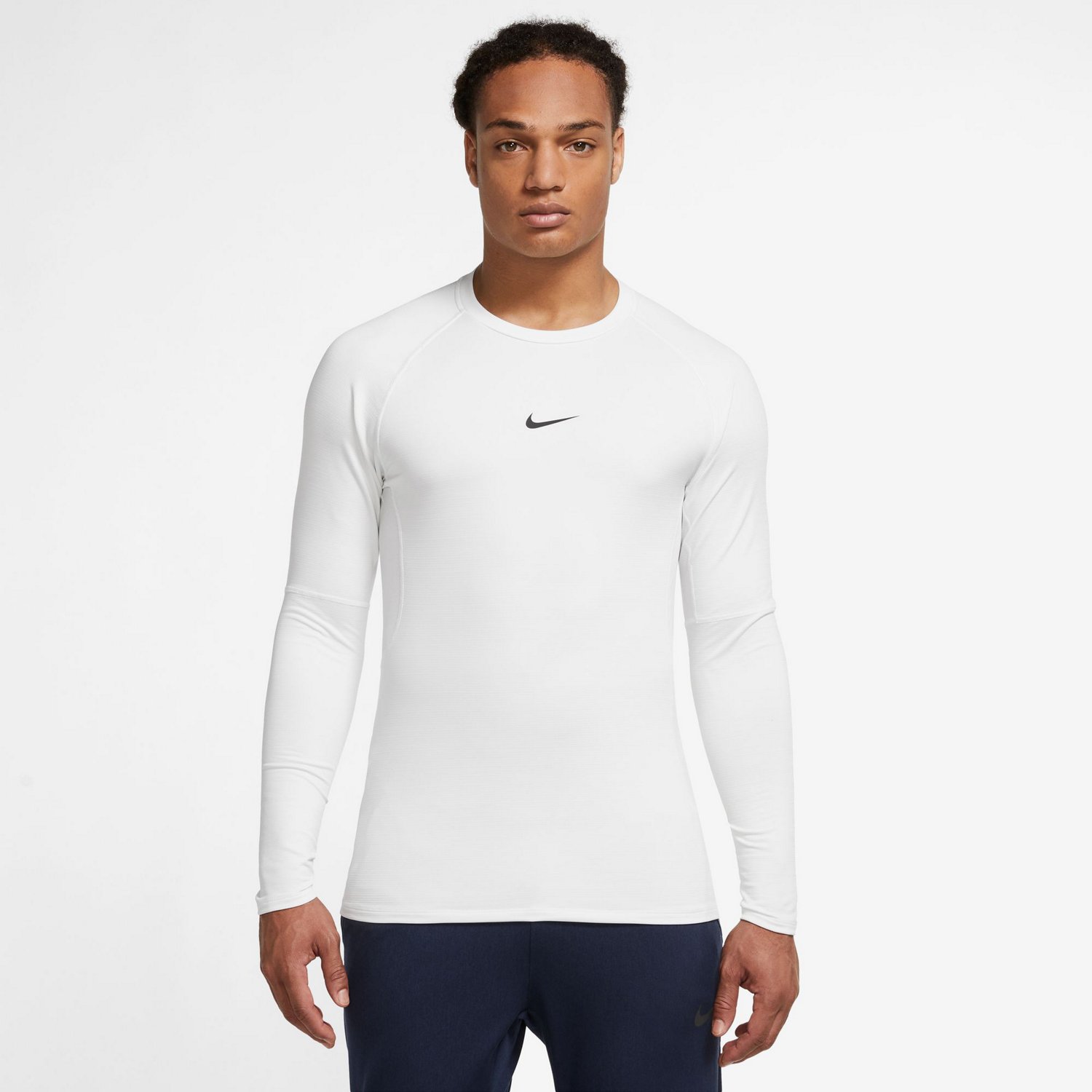 Keep training when the temperature drops with the Nike Men's Pro Warm Long Sleeve Crew Top. The French terry fabric feels soft and moves with your body for an unrestrictive fit. Moisture-wicking technology and strategic mesh ventilation panels help you stay fresh throughout your workout.