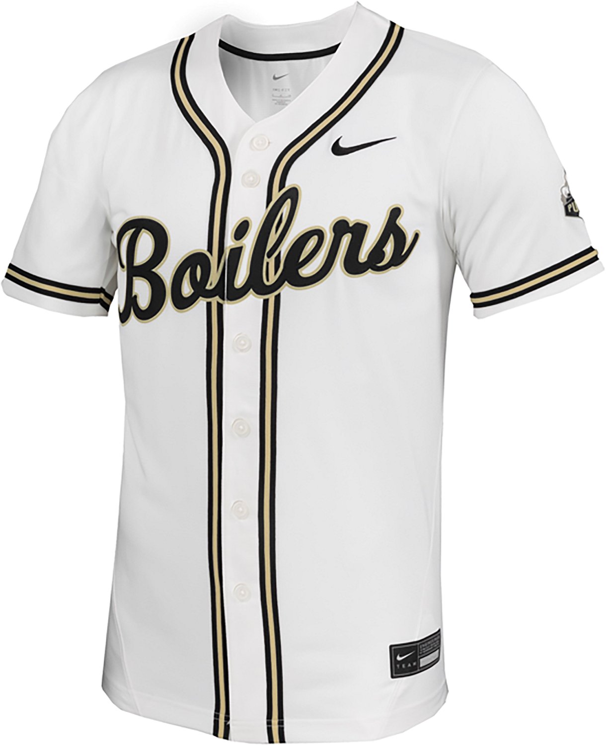 You can showcase your fandom for all to see by wearing the Nike Men's Purdue Limited Full Button Baseball Jersey. This jersey is made of 100% polyester to provide a soft feel and features a team theme that will help you show support.