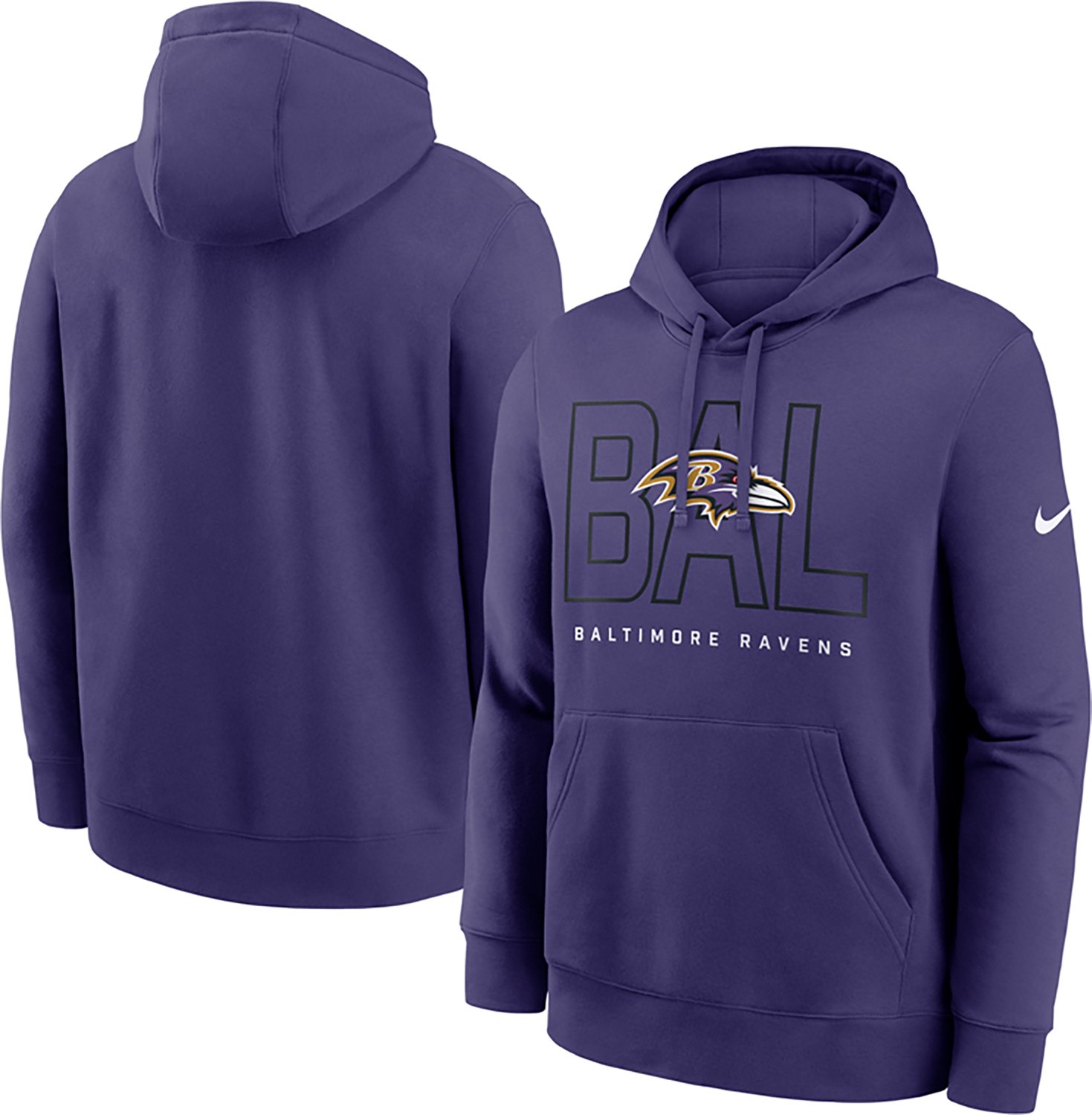 Make sure everyone knows how much you love your team by wearing the Nike Men's Ravens Club Long Sleeve Pullover Hoodie. The pullover is designed with long sleeves and a hood for generous coverage and sports a team theme to excite other fans.