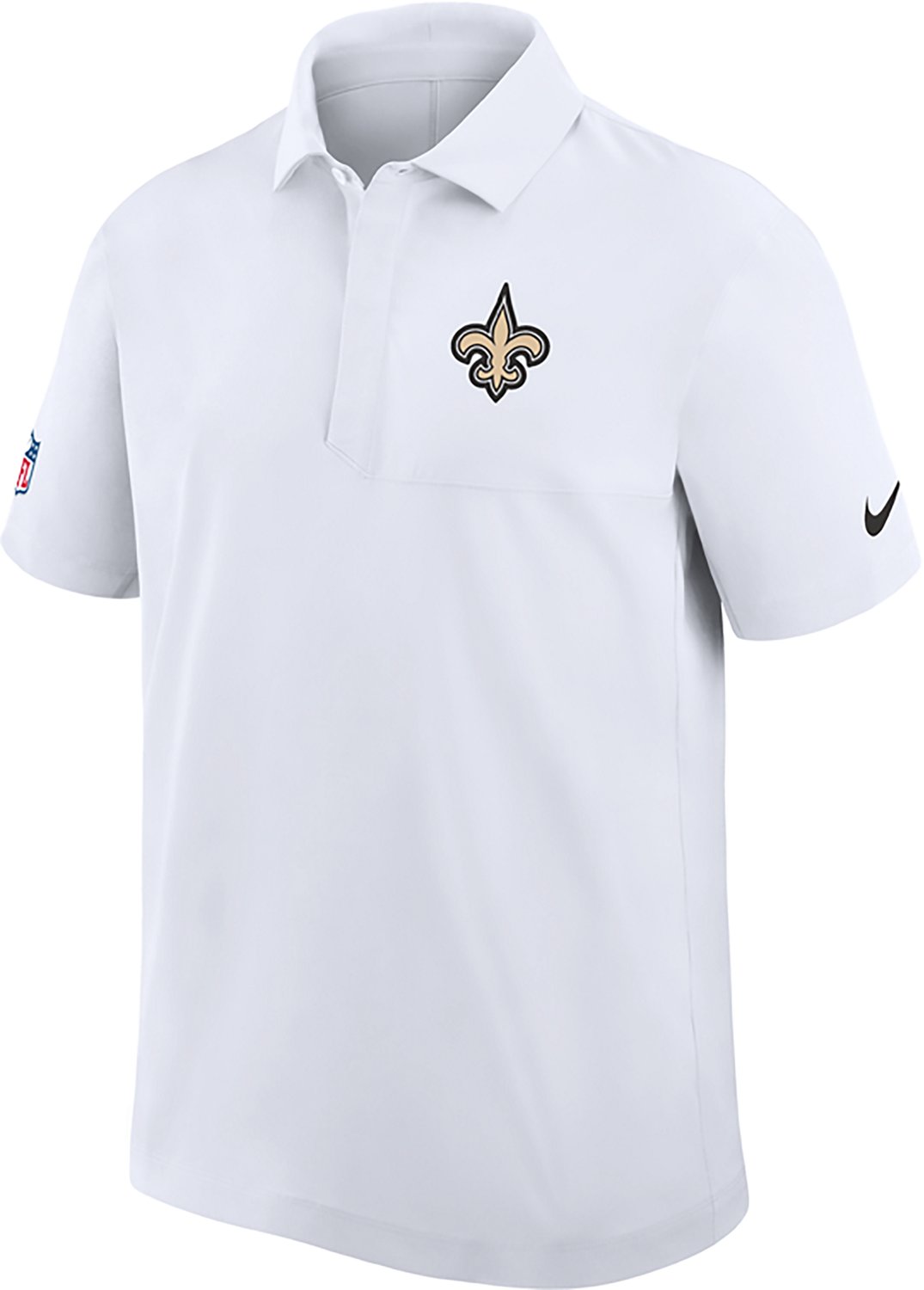Get other fans excited for the game by wearing the Nike Men's Saints Dri-FIT Sideline Woven Coach's Polo Shirt. This polo provides cooling comfort thanks to Dri-FIT technology, and its team design helps you cheer them on.