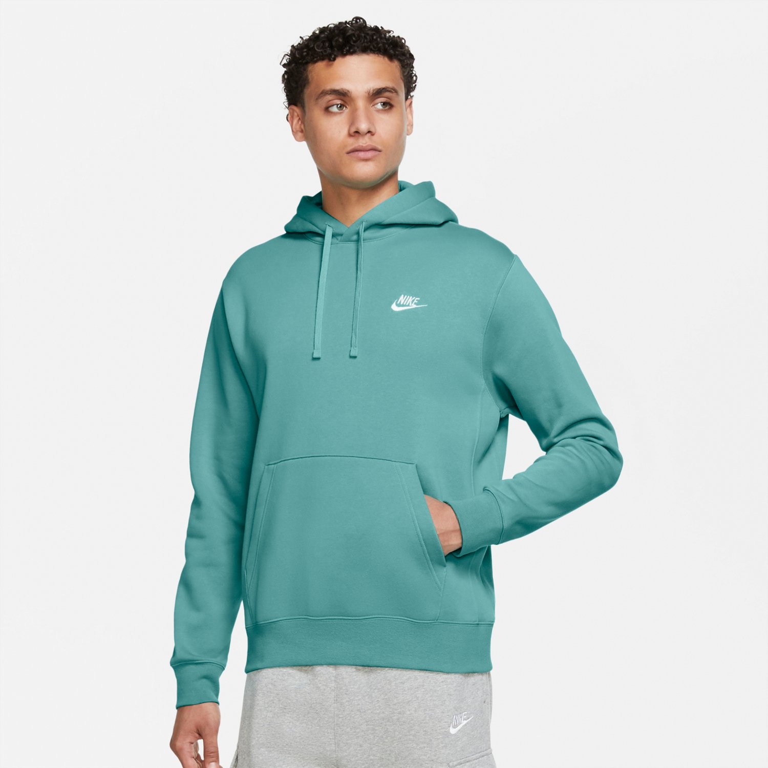 Stay warm with help from the Nike Men's Sportswear Club Fleece Pullover Hoodie. The pushed-back fleece is soft against the skin for enhanced comfort, and the large front pocket provides room to tuck your hands to help keep them cozy in chilly weather.