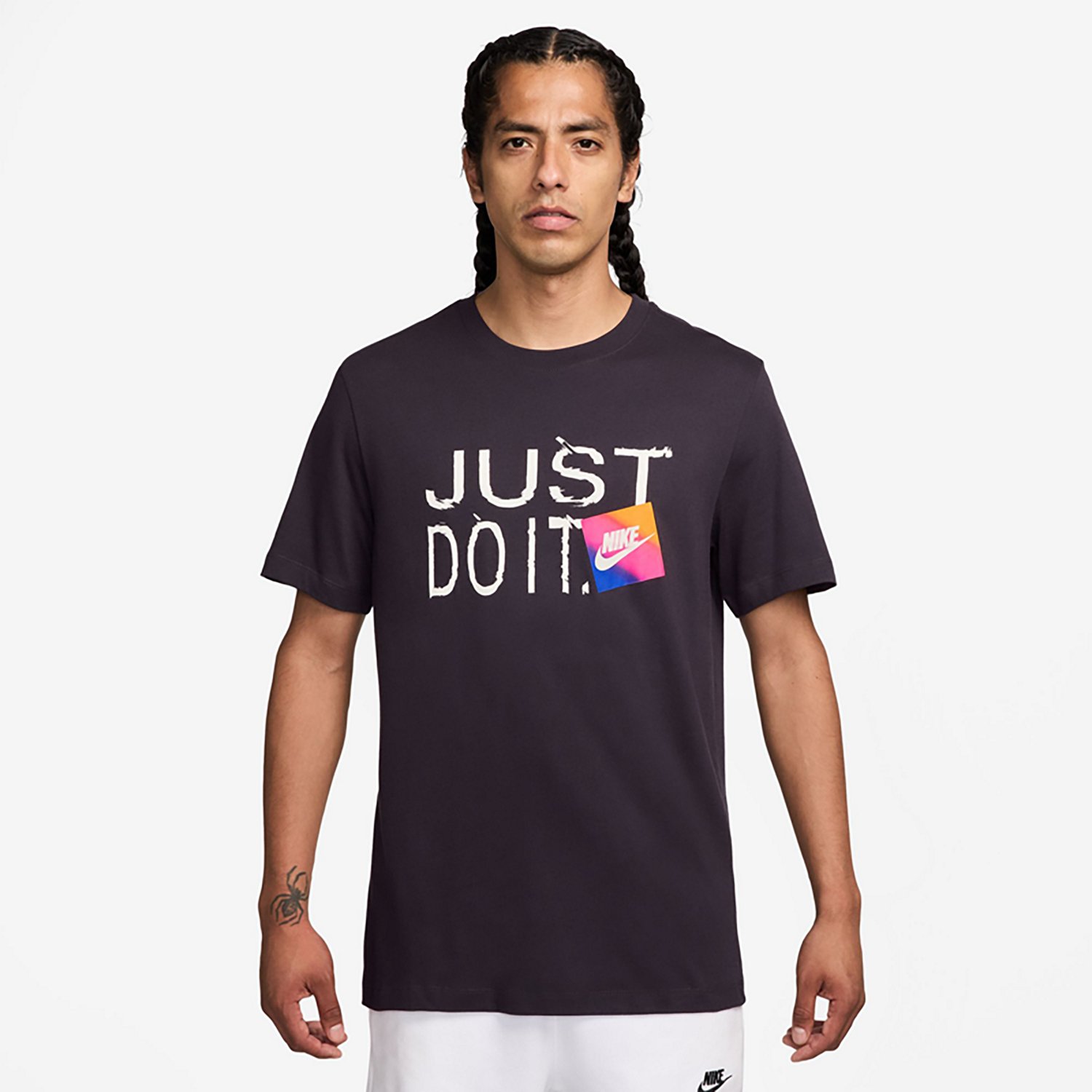 You can bring style to the forefront when you make the Nike Men's Sportswear Just Do It T-shirt part of the day's outfit. This T-shirt is made of 100% cotton for lightweight comfort, offers a relaxed fit through the body and sports a Just Do It graphic on the chest to boost your confidence.