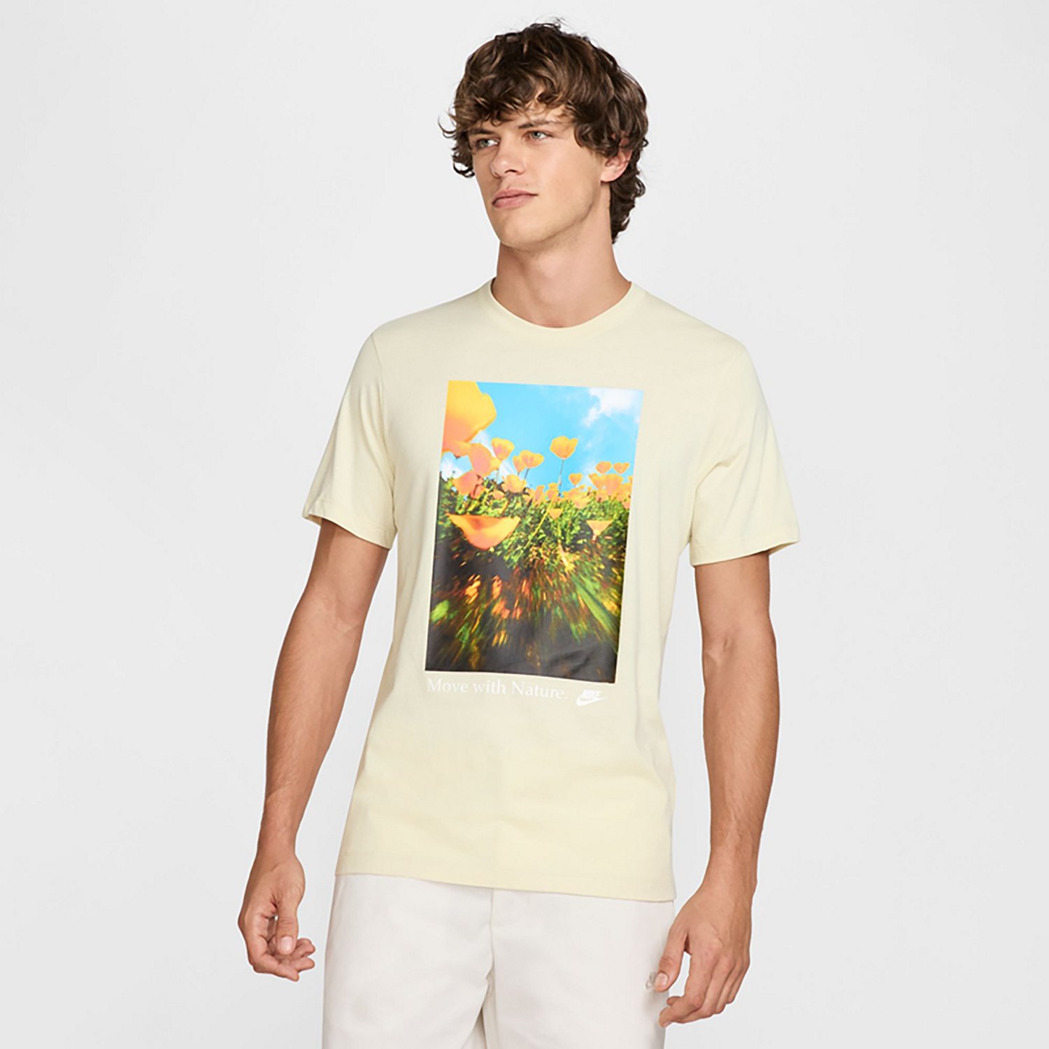 If you want to get people talking about your outfit, throw on the Nike Men's Sportswear OC Photo T-shirt. This stylish tee is designed with a front graphic that is vibrant and exciting, and the 100% lightweight cotton fabrication, crew neck and short sleeves combine to provide lasting comfort and a casual look.