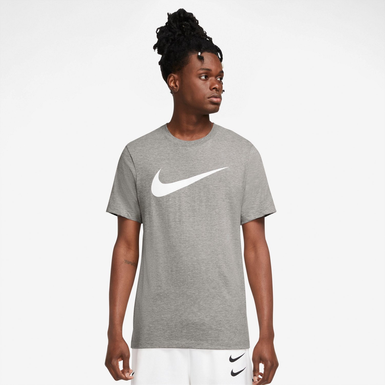 Show off your bold street style and stay comfortable in the Nike Men's Sportswear Swoosh Icon T-shirt. The large Swoosh graphic printed on the chest creates an eye-catching design and adds a fun, sporty look to your appearance. The 100% cotton construction offers a soft feel and a lightweight fit.