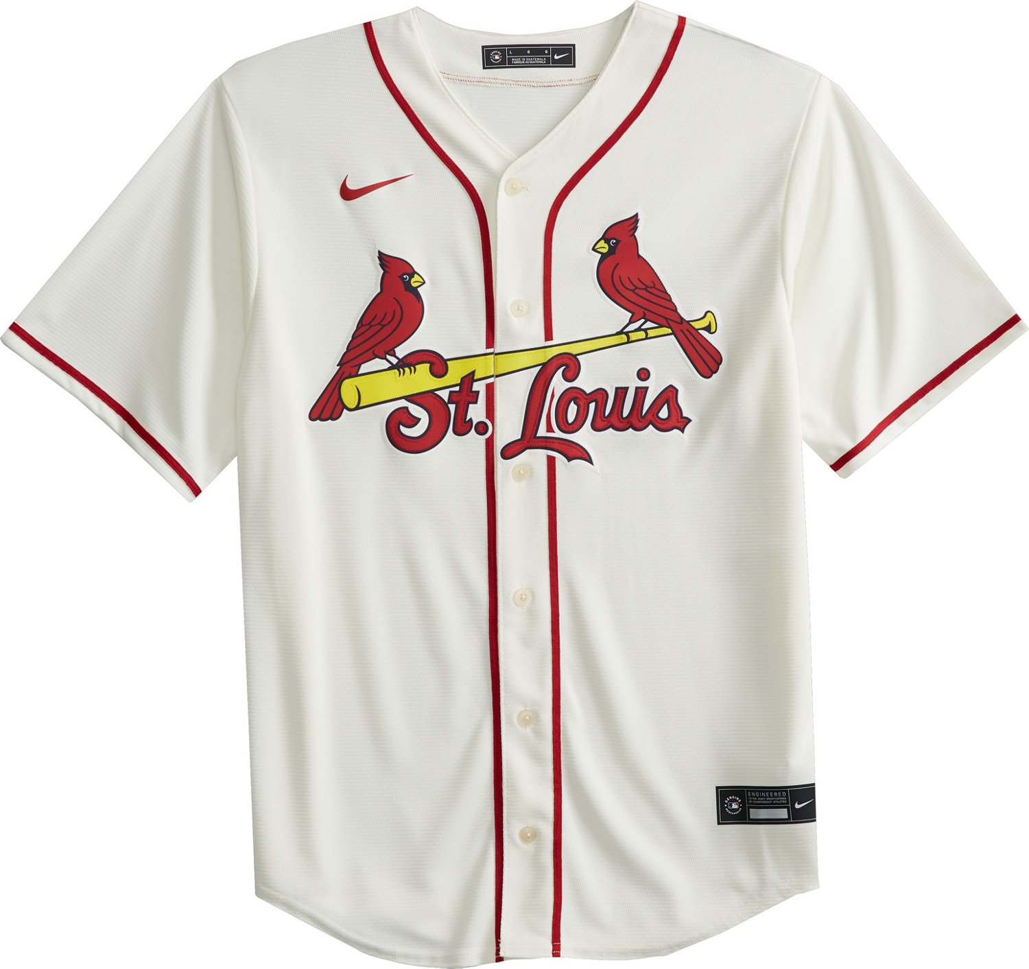 Make sure everyone knows who you root for by wearing the Nike Men's St. Louis Cardinals Blank Official Replica Alternate Jersey. This replica jersey is made of soft and breathable polyester offset mesh and features a bold team graphic to make your allegiance known.