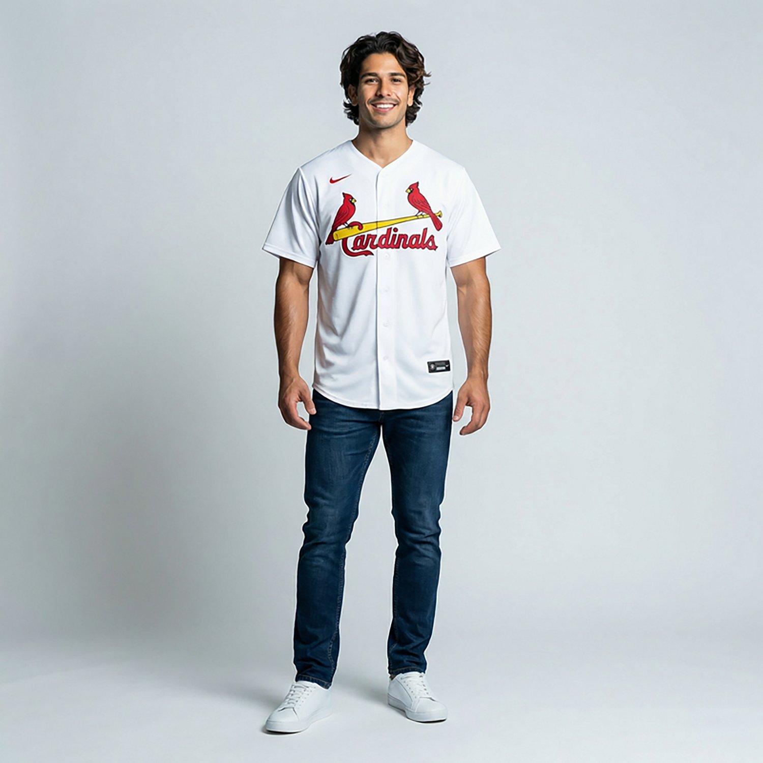 Make sure everyone knows who you root for by wearing the Nike Men's St. Louis Cardinals Blank Official Replica Home Jersey. This replica jersey is made of soft and breathable polyester offset mesh and features a bold team graphic to make your allegiance known.