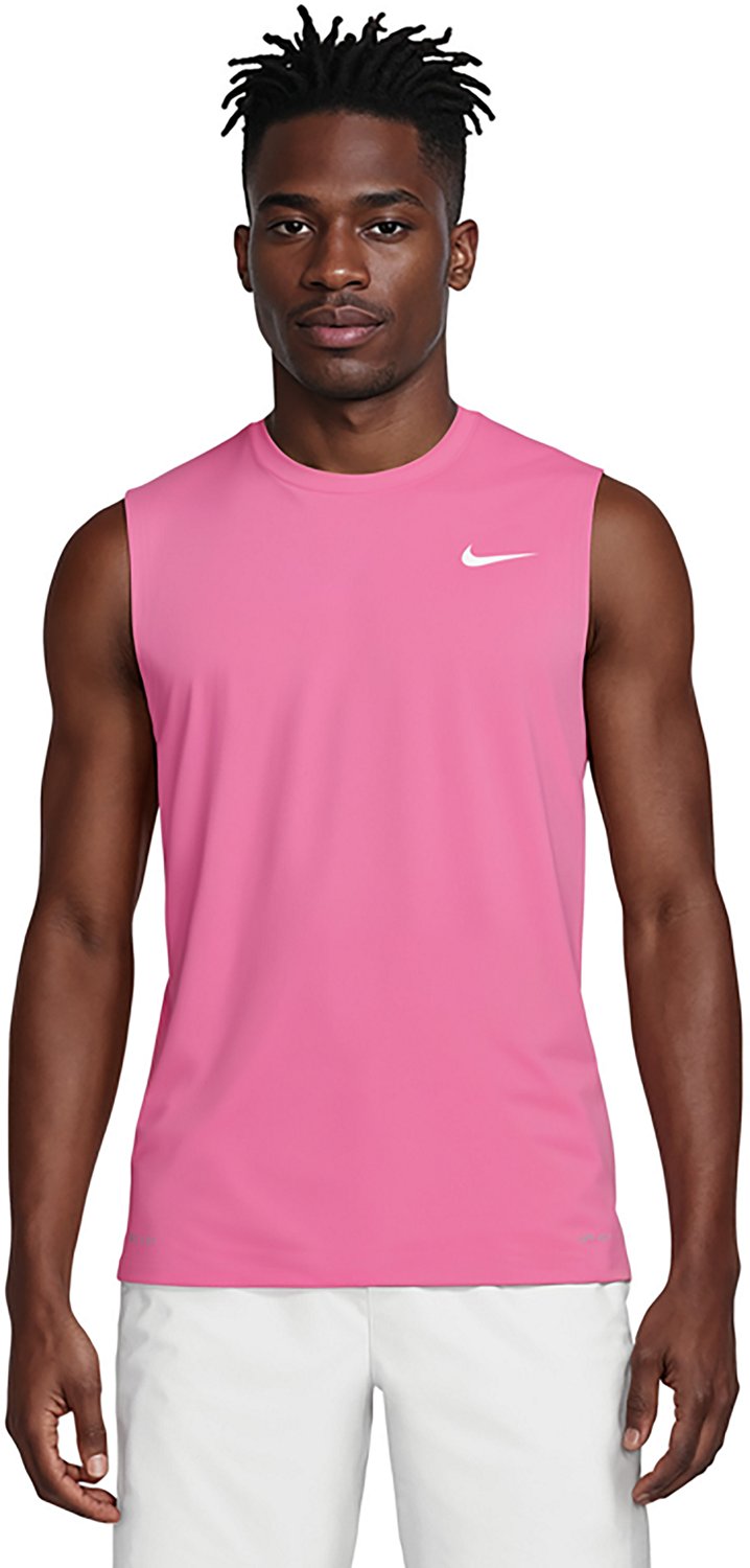 Take your training outdoors with the Nike Men's Swim Essential Sleeveless Hydroguard. Constructed with interlock knit fabric, this swim shirt provides stretchy comfort, while the Dri-FIT technology wicks away sweat to keep you cool and dry. UPF 40+ protection shields against harmful UV rays, and the heat-transferred Nikeâ„¢ Swoosh design delivers a stylish touch.