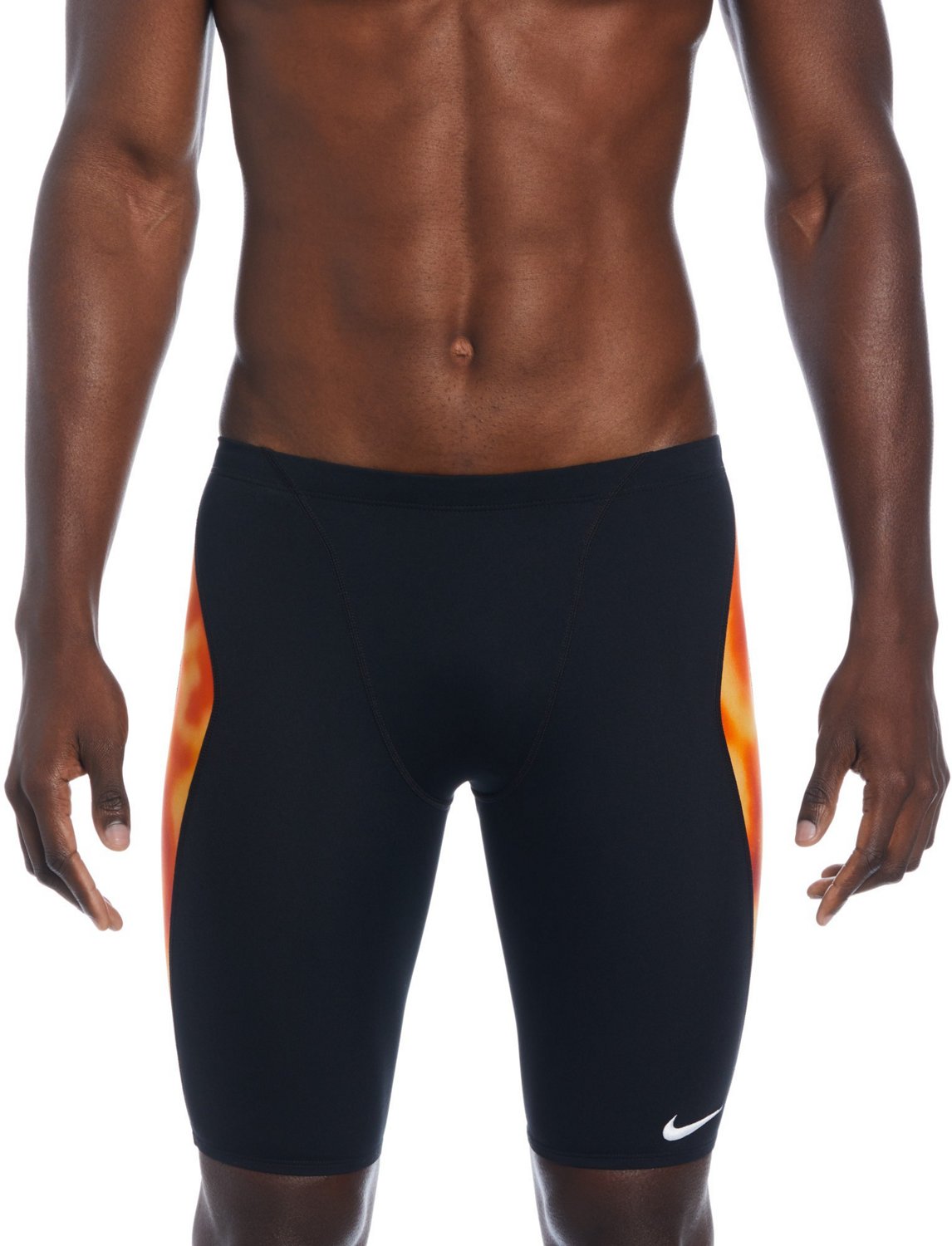 Show off your boldness with the Nike Men's Swim Jammer. The 100% polyester construction features HydraStrong technology to last all season long. The drawstring waistband allows a custom fit, while the front gusset and liner offer optimal coverage. Bold colors and patterns create a stylish look.