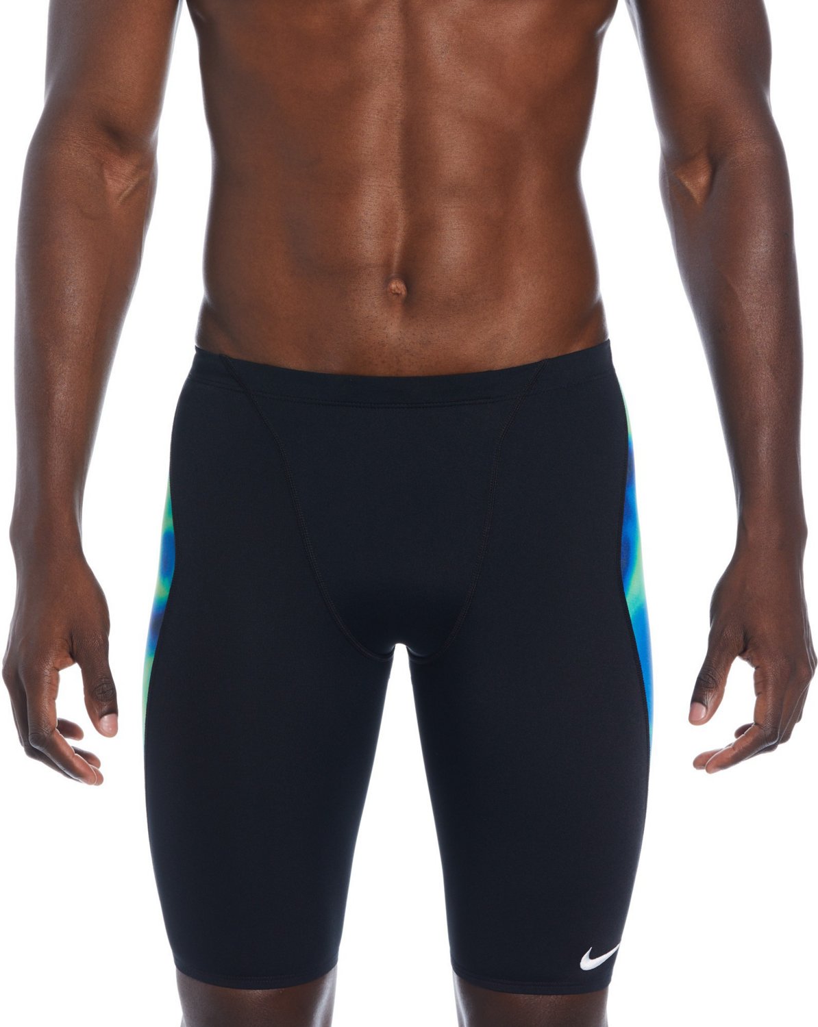 Show off your boldness with the Nike Men's Swim Jammer. The 100% polyester construction features HydraStrong technology to last all season long. The drawstring waistband allows a custom fit, while the front gusset and liner offer optimal coverage. Bold colors and patterns create a stylish look.