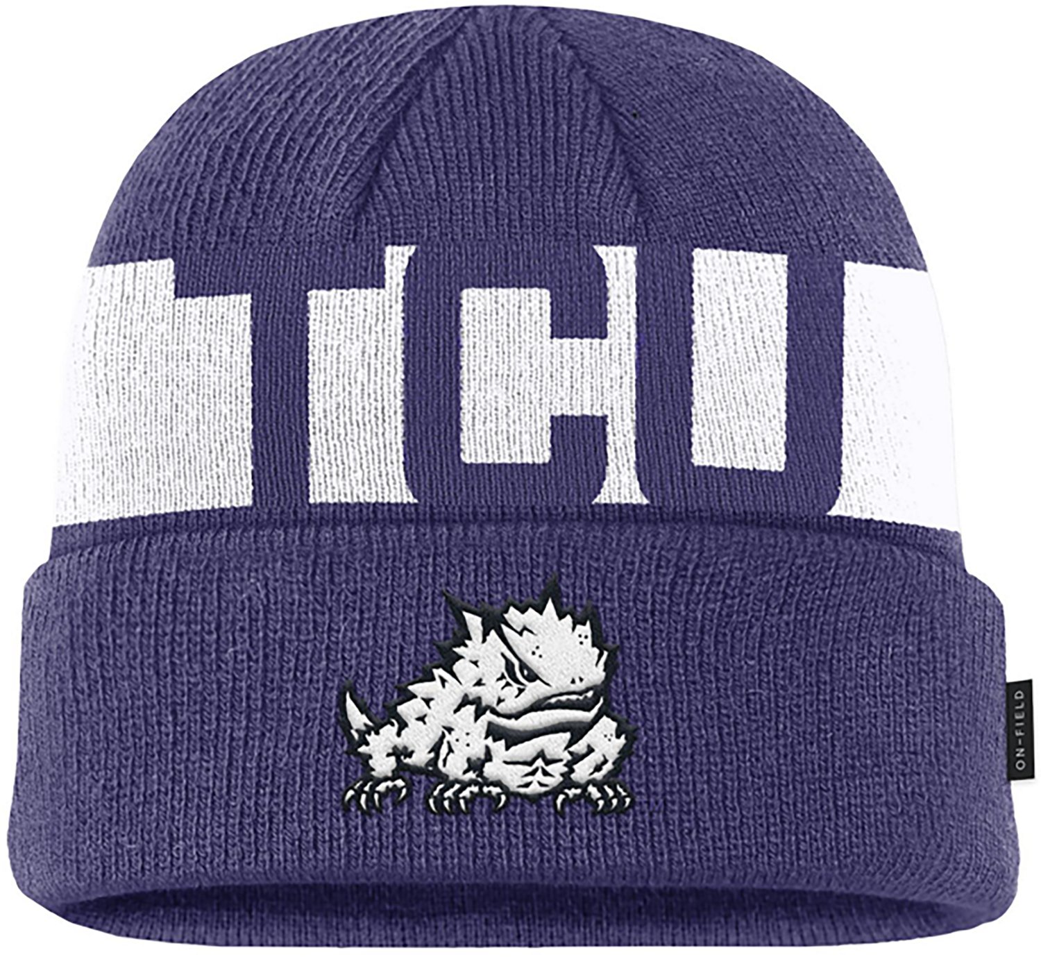 Head to the next game while wearing the Nike Men's TCU Team Utility Cuff Beanie. The 100% acrylic construction offers a comfortable feel, while the team graphic shows off your fan pride.
