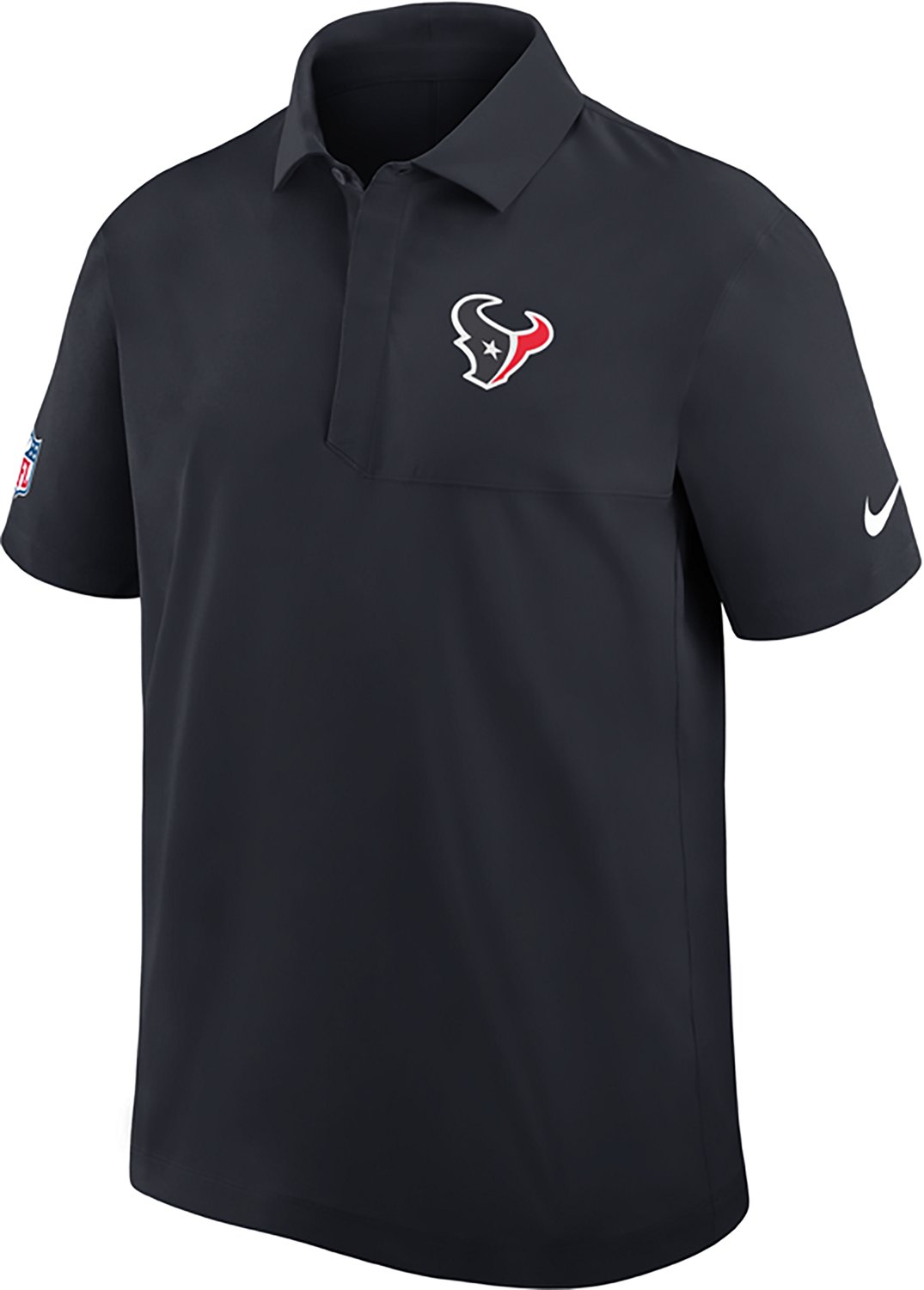 Get other fans excited for the game by wearing the Nike Men's Texans Dri-FIT Sideline Woven Coach's Polo Shirt. This polo provides cooling comfort thanks to Dri-FIT technology, and its team design helps you cheer them on.
