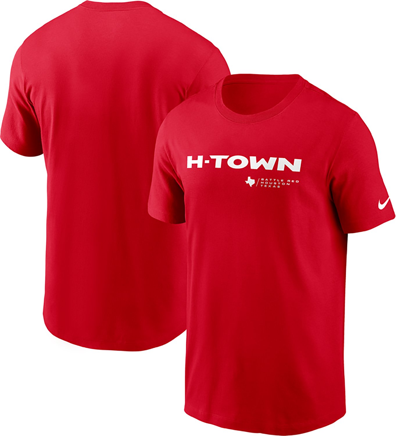 Rep your Texans pride with the Nike Men's Texans H-Town Wordmark Short Sleeve Tee, an everyday essential for loyal fans. This tee seamlessly blends casual style with your passion for the Texans, perfect for any occasion. Crafted with comfort and durability in mind, it’s designed to keep you connected to your team all season long. Wear it proudly and let everyone know who you're cheering for.
