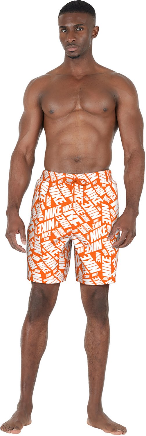 Splash around in the Nike Men's Tossed Volley Swim Shorts 7 in. Their fabric is water resistant. The body is made of 100% polyester, and their lining is made of 50% recycled polyester and 50% polyester. The Nike print all over adds to the design