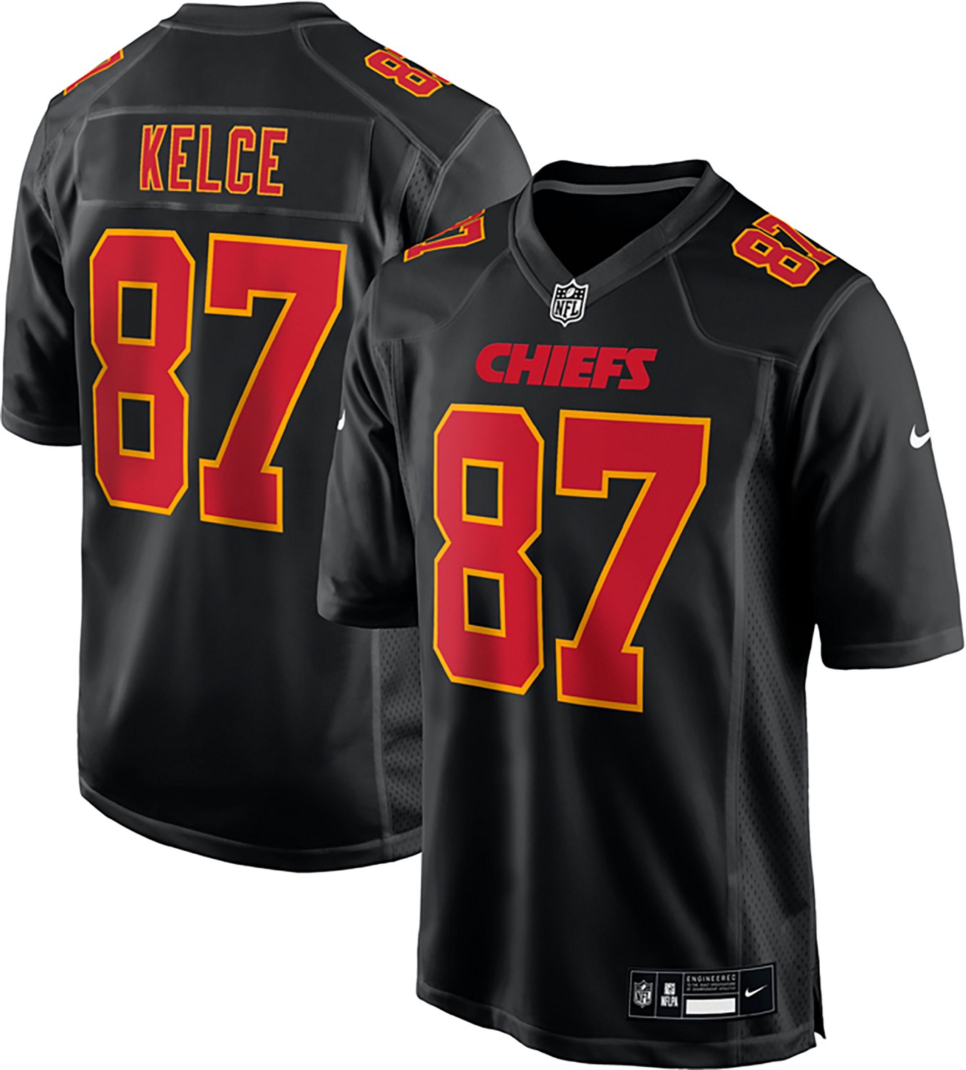 Root for your favorite team when you wear the Nike Men's Travis Kelce Kansas City Chiefs Black Carbon Name and Number Jersey. It is made of 100% polyester tricot. The mesh side panels allow for extra breathability, and its side splits at the hem improve movement. The stitched NFL Shield at the collar provides an official look.