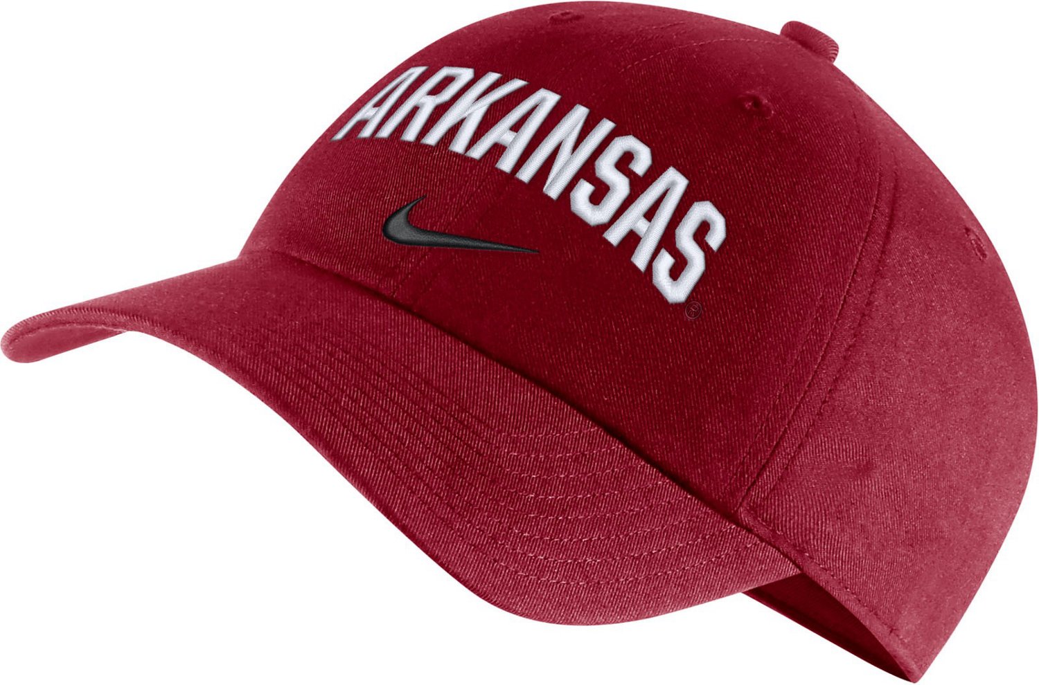 When you want to express your UARK fandom, be sure to put on the Nike Men's University of Arkansas H86 Arch Cap. This cap is designed with a team theme that highlights your allegiance to the Razorbacks on during games, and the 100% cotton washed twill fabric is soft to provide long-lasting comfort.