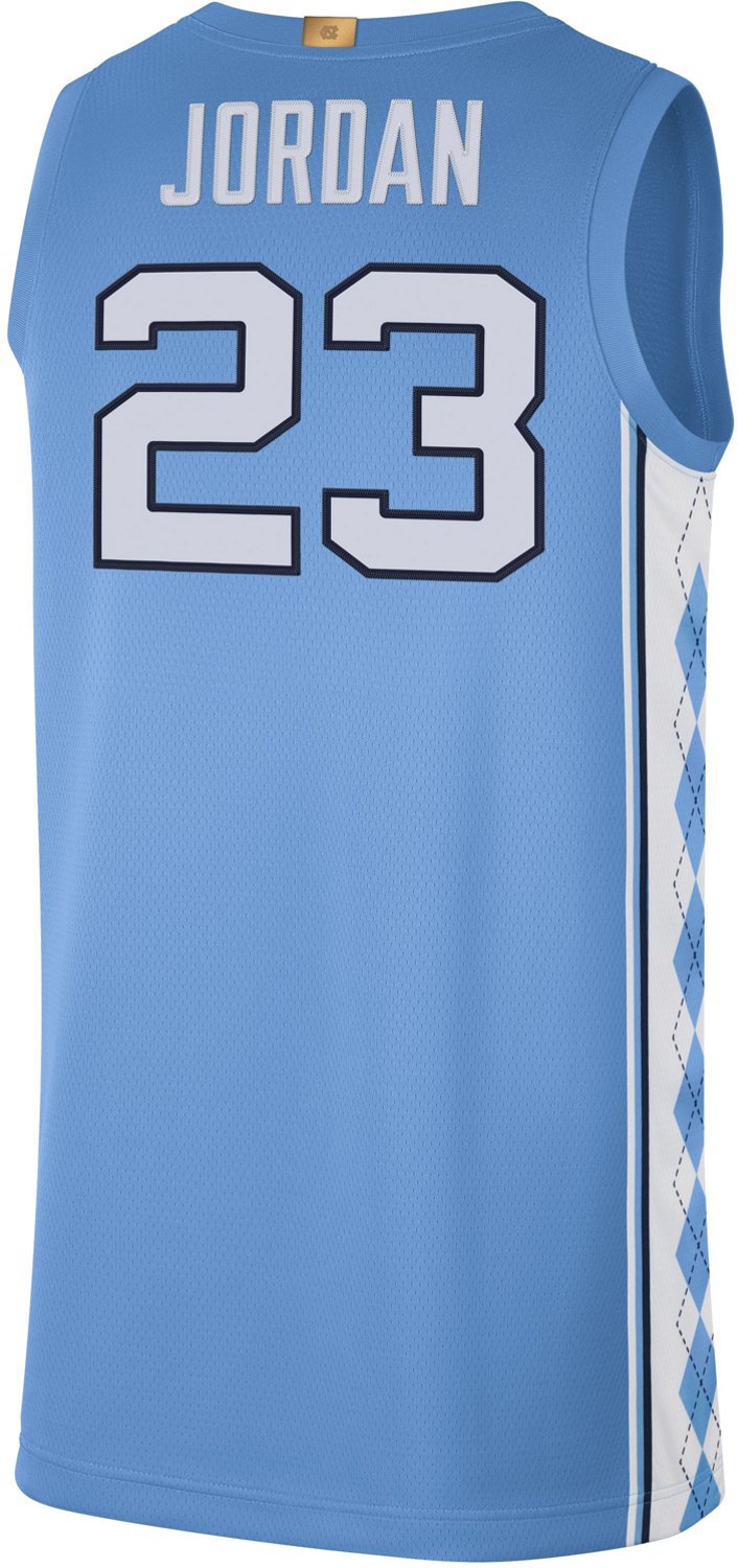 Rep the Tar Heels in the Nike Men's University of North Carolina Michael Jordan #23 Dri-FIT Limited Jersey. This jersey is made from 100% recycled polyester mesh for breathability and has Dri-FIT technology to keep you dry and comfortable. The screen-printed UNC team details and Michael Jordan #23 graphic resemble a real game jersey to show your team spirit