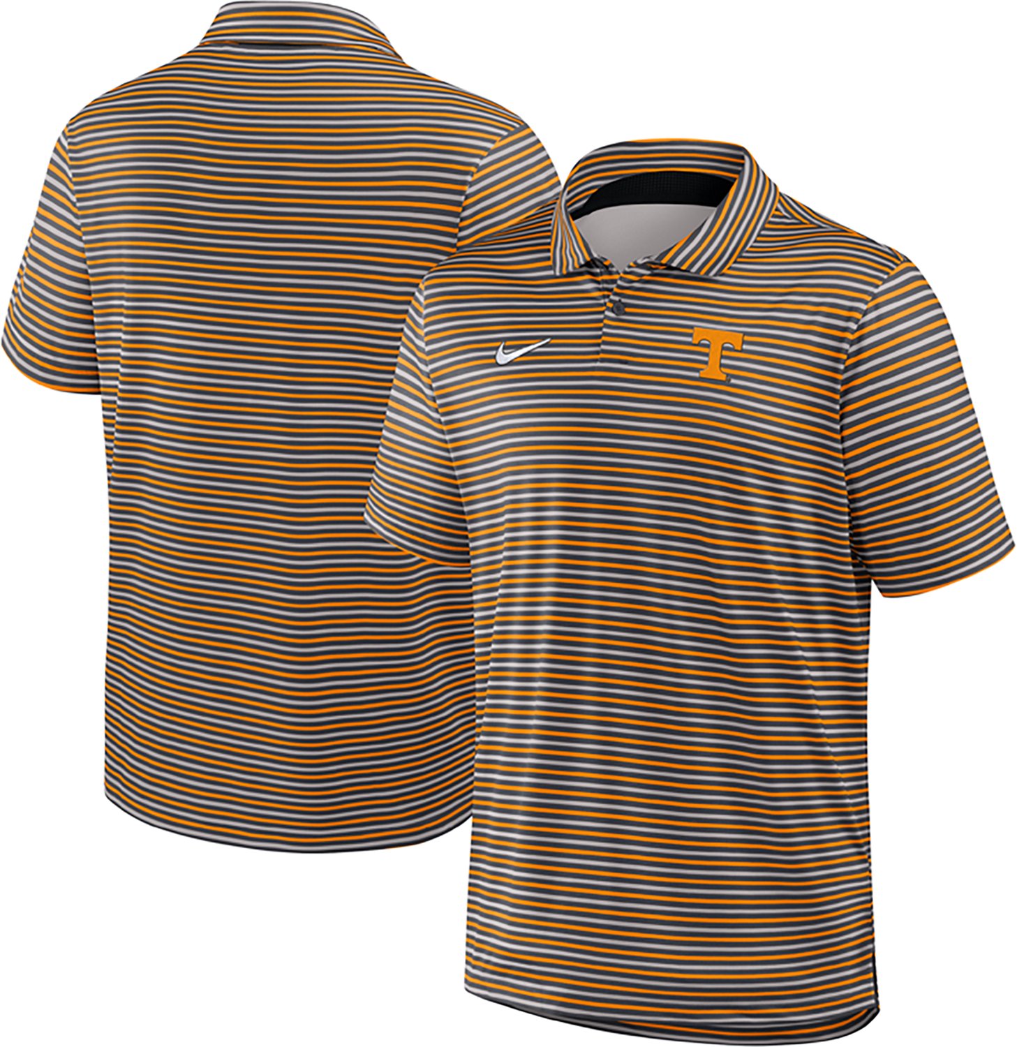 Get ready for the big game with the Nike Men's University of Tennessee Dri-FIT Stripe Tour Polo Shirt. The short sleeves and collar provide a comfortable fit, while the Dri-FIT technology helps keep you cool and dry. The team logo shows off your Volunteers pride.