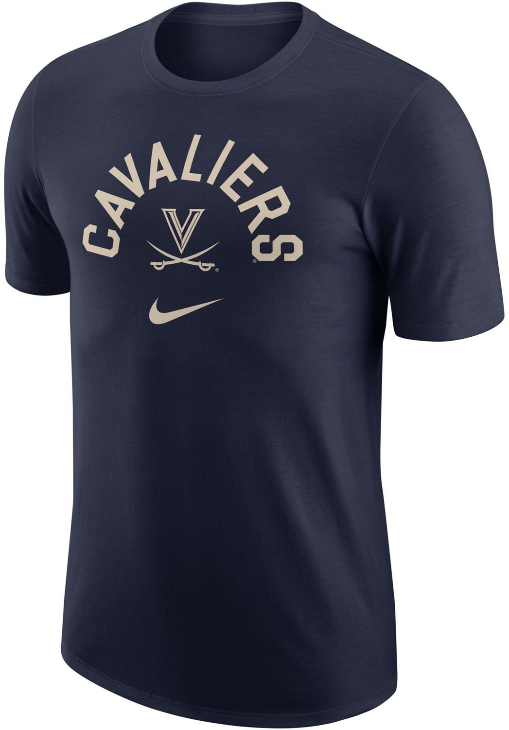 Be the envy of other fans when you sport the Nike Men's University of Virginia University T-shirt during the next Cavaliers game. The tee is made of 50% cotton and 50% polyester with short sleeves and a crew neck for casual comfort and features a UVA team graphic on the chest to help support your favorite school.