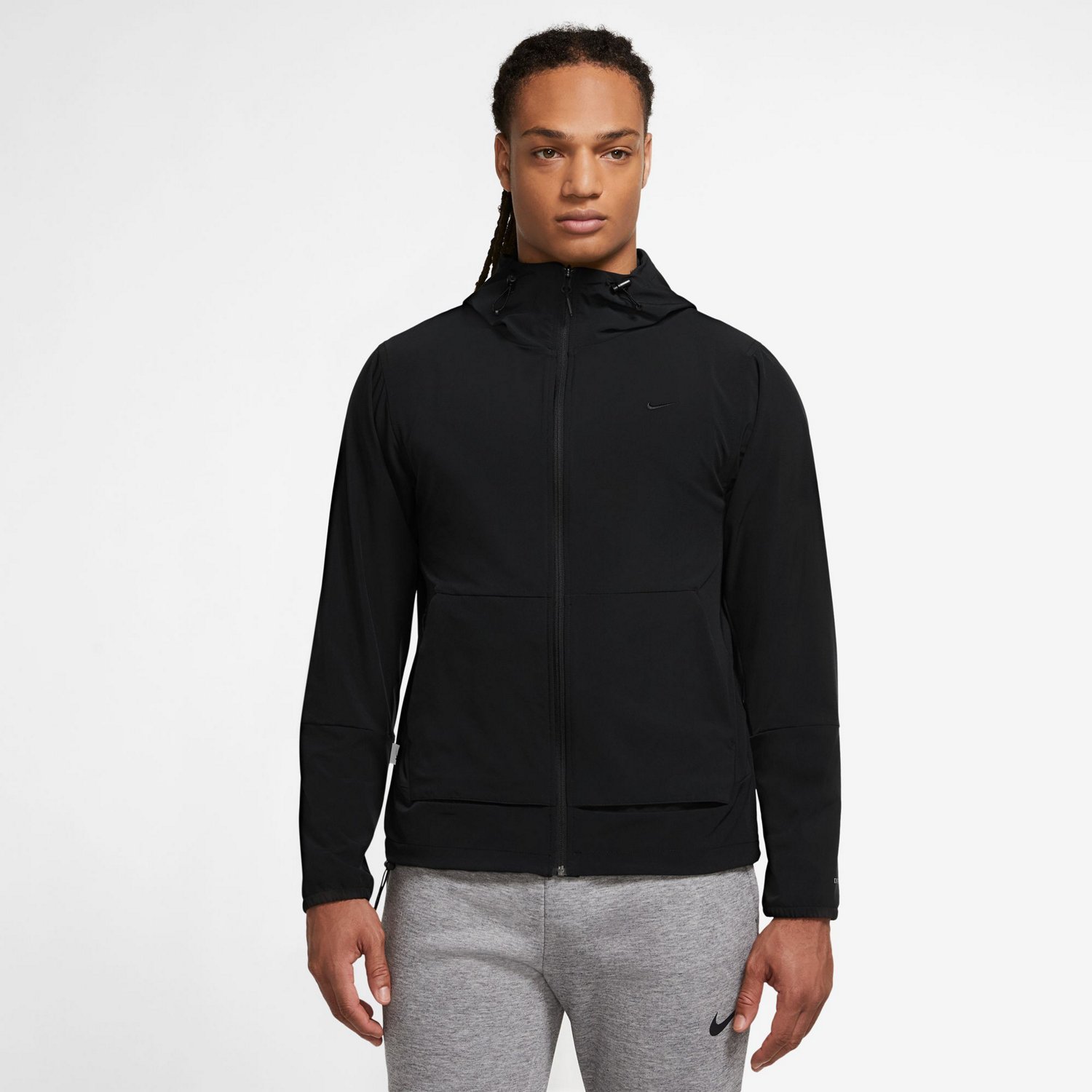 Stay dry wearing the Nike Men's Unlimited Repel Versatile Jacket. This full-zip jacket is made of polyester and spandex mid-weight stretch woven fabric that repels water so you can stay dry. The Dri-FIT technology moves sweat away from your skin for quicker evaporation.
