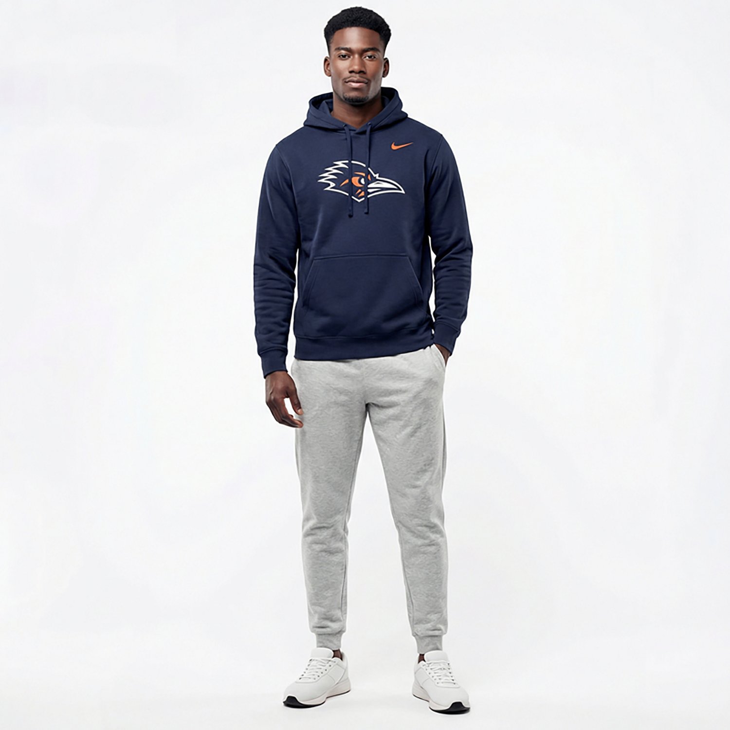 Stay cozy while cheering on your favorite team with the Nike Men's UTSA Primary Logo Club Fleece Hoodie. The cotton and polyester brushed-back fleece construction provides comfort and durability, while the team graphic lets everyone know who you cheer for on game day.