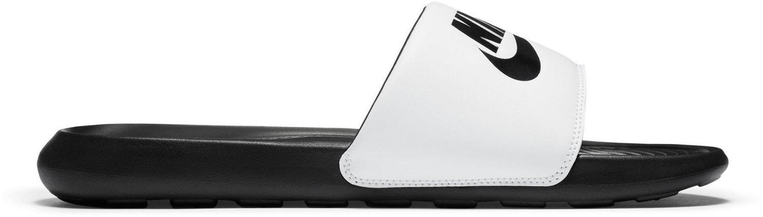 Lounge outside wearing the Nike Men's Victori One Slides. The contoured footbeds support your feet, and the soft foam midsoles have a responsive feel.