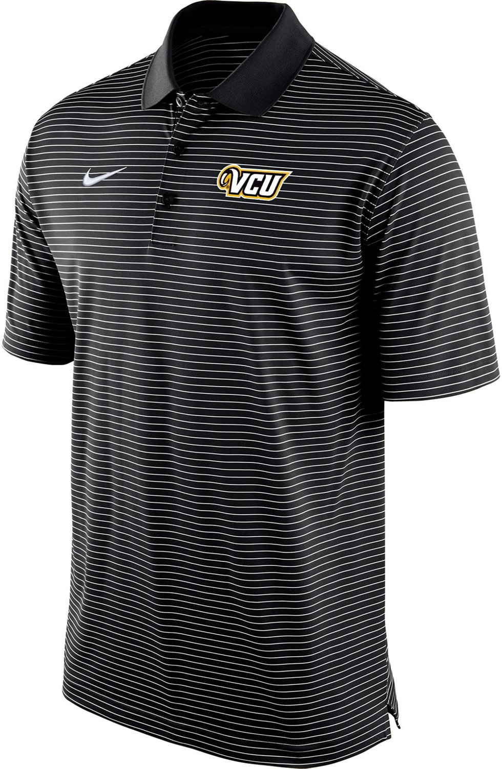 Look and feel good while supporting your team in the Nike Men's Virginia Commonwealth University Stadium Stripe Polo Shirt. This shirt features Dri-FIT fabric technology to wick moisture, 100% polyester construction for daily comfort and a VCU team logo graphic on the left chest that helps prove your love for the Rams.