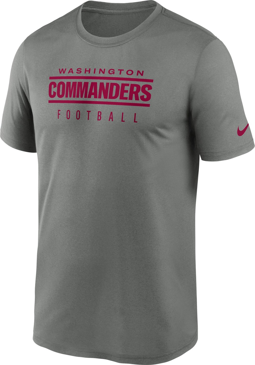 Support the Commanders in the Nike Men's Washington Commanders Legend Dri-FIT T-shirt. This T-shirt is made from 100% recycled polyester fabric for durability and has Dri-FIT technology that wicks sweat to keep you dry. The screen-printed Commanders graphic shows your team spirit.