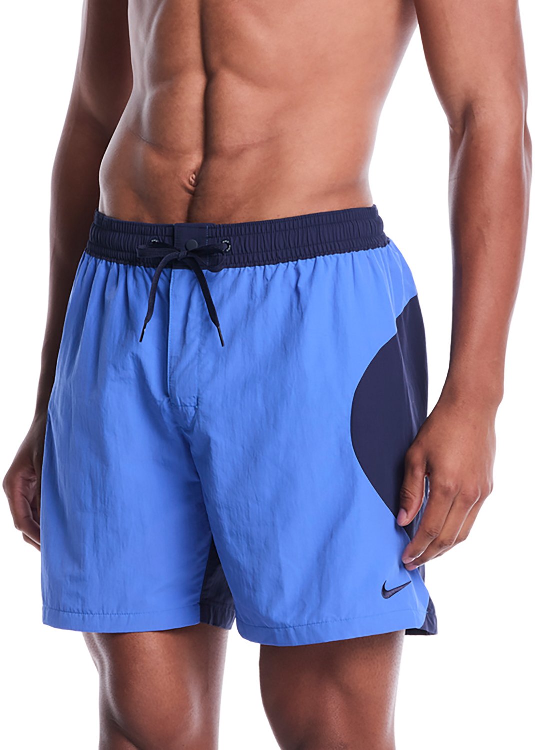 You'll love making waves when you wear the Nike Men's Zip Colorblock Fully Lined Volley Swim Shorts 7 in, which wick away moisture and offer mesh lining. The swim shorts are made of 100% recycled nylon Taslan to offer a soft feel and allow simple size adjustments thanks to their drawstring waist.