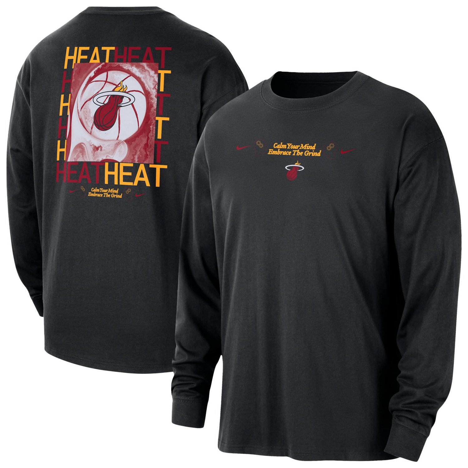 Add a sleek and comfortable addition to your Miami Heat game-day attire with the Nike Courtside Oversized Long Sleeve T-Shirt Made with 100 cotton this shirt provides all-day comfort with a relaxed fit Featuring screen print graphics on the front and back everyone will know you're repping the Miami Heat wherever you go
