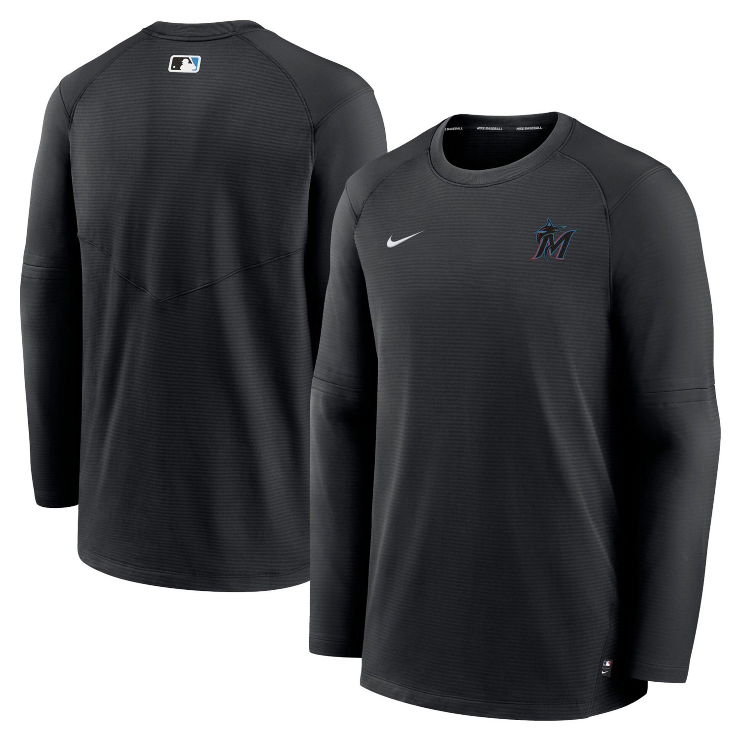 The Men's Nike Black Miami Marlins Authentic Collection Logo Performance Long Sleeve T-Shirt is the perfect way to show your support for the Miami Marlins Made from a lightweight and breathable polyester-spandex blend this long sleeve tee features Dri-FIT technology to keep you cool and dry The embroidered Miami Marlins logo on the chest and the team colors throughout the design make this shirt a must-have for any Marlins fan Whether you're cheering on the Marlins at the stadium or just showing your support around town the Men's Nike Black Miami Marlins Authentic Collection Logo Performance Long Sleeve T-Shirt is the perfect way to represent your team