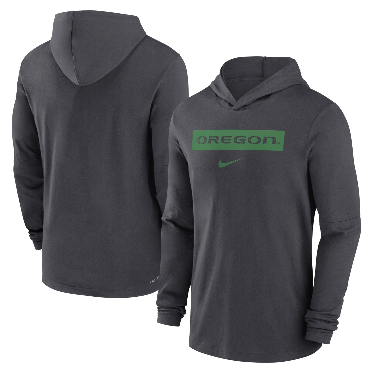 Step out in Oregon Ducks spirit with this Sideline T-shirt from Nike It features a team wordmark across the front on moisture-wicking Dri-FIT fabric The attached hood offers extra coverage perfect for cheering the Oregon Ducks to a win