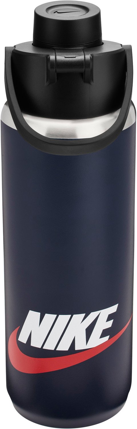 Hydrate when you need it with the Nike Recharge 24 oz Chug Bottle. The stainless steel construction affords durability, while the scratch-resistant finish ensures lasting use. The vacuum insulation helps keep drinks cold, and the ergonomic shape affords comfort.