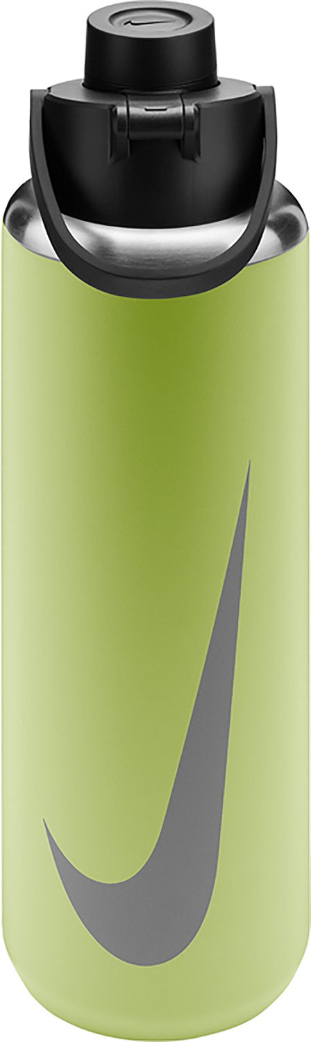 Enjoy cold water on the go with the Nike Recharge Chug 32 oz Stainless Steel Water Bottle. This vacuum-insulated stainless steel water bottle keeps drinks cold for hours. The leak-resistant lid and twist-off cap makes sipping easy without drips. Carry it with you using the comfortable finger loop.