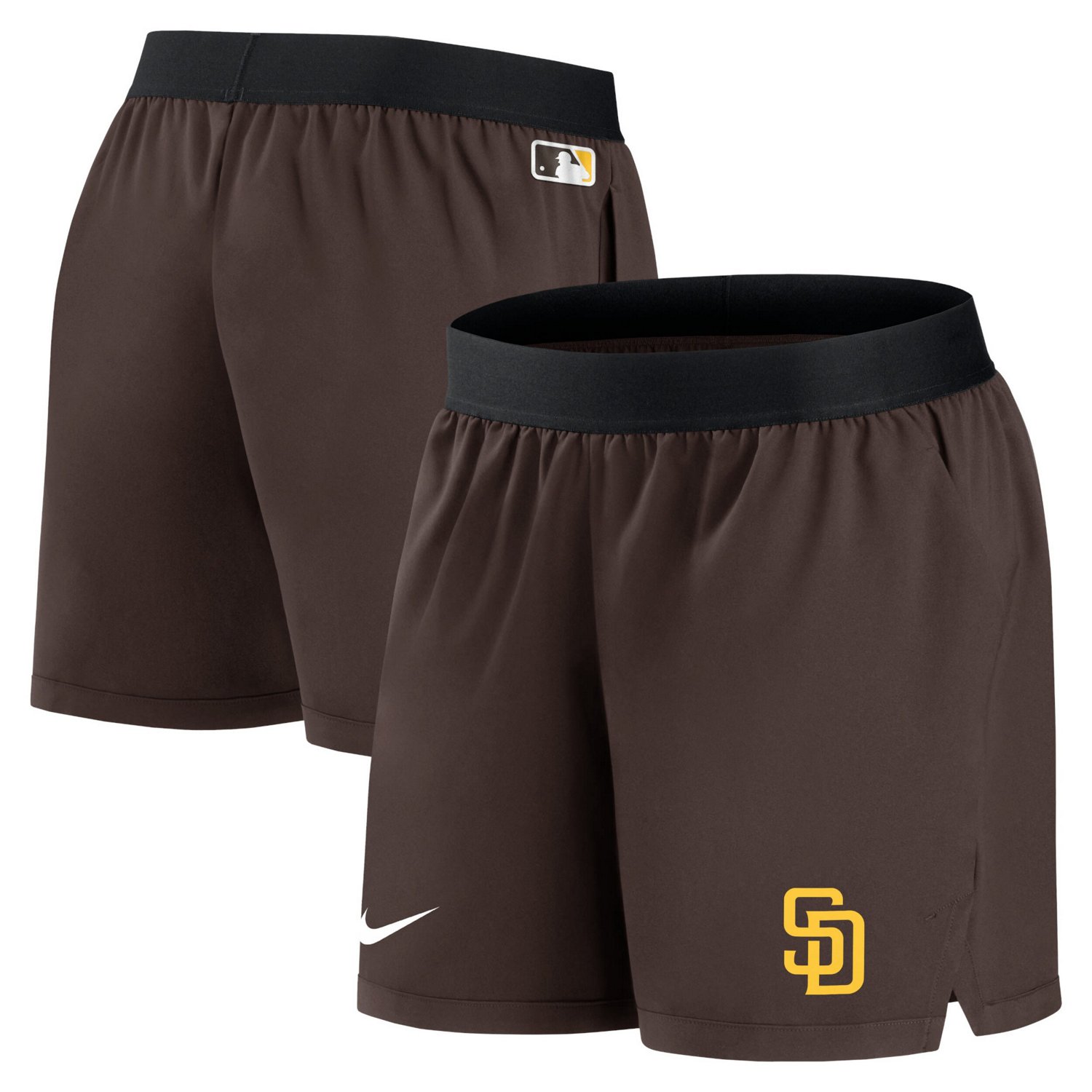 Designed with the San Diego Padres logo at the hem these Authentic Collection Team shorts from Nike are made with lightweight polyester and sweat-wicking Dri-FIT technology to help keep you dry and moving comfortably They feature two-way stretch fabric that helps provide extra flexibility and multiple pockets for plenty of storage space An elastic waistband also gives this pair of San Diego Padres shorts a stretch fit