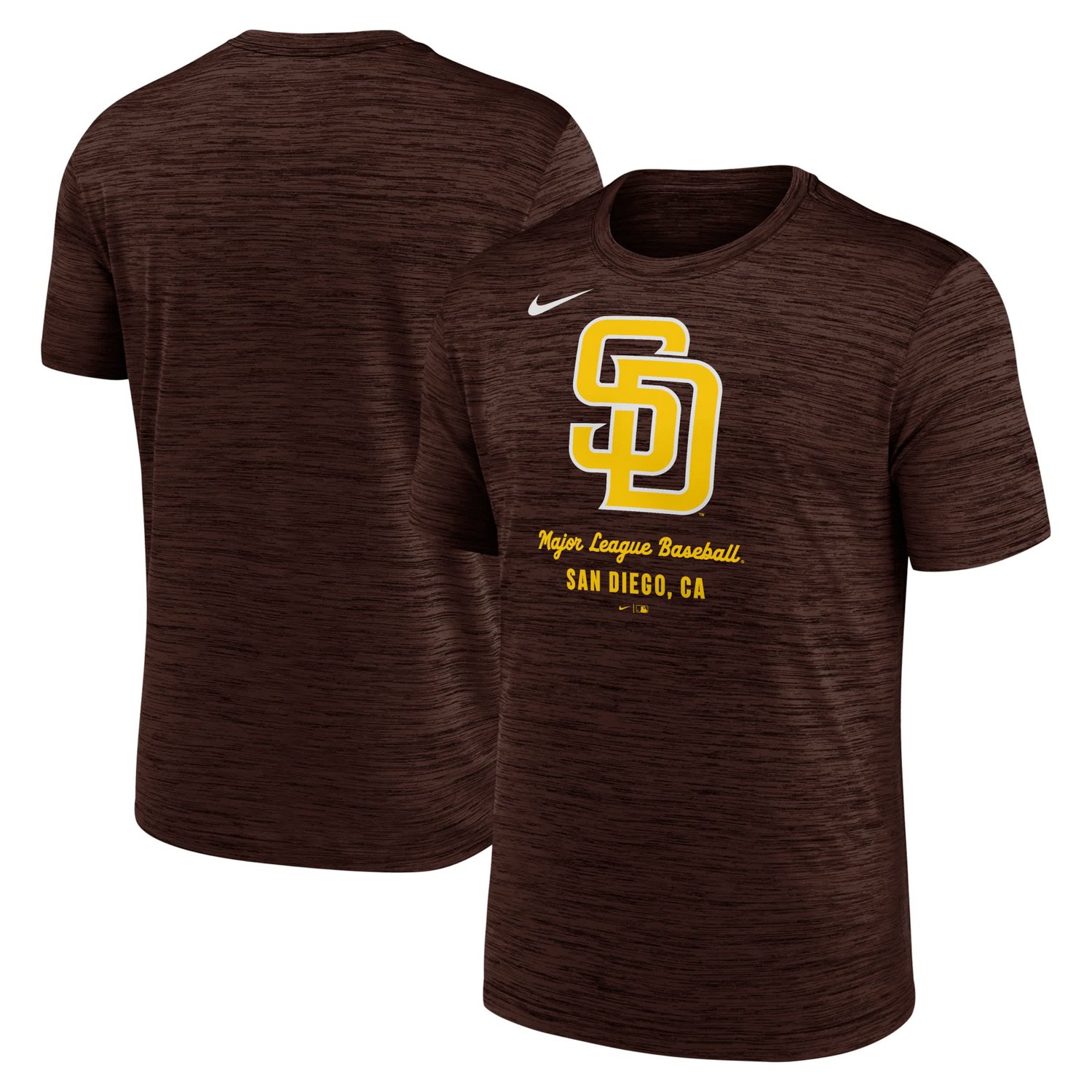 Boost your comfort level with this San Diego Padres Authentic Collection Velocity Performance T-Shirt by Nike Sweat-wicking Dri-FIT technology keeps you cool and dry at the ballpark or wherever the day takes you Made with 100 polyester in a cross-dyed pattern this San Diego Padres tee provides a comfortable feel that lasts
