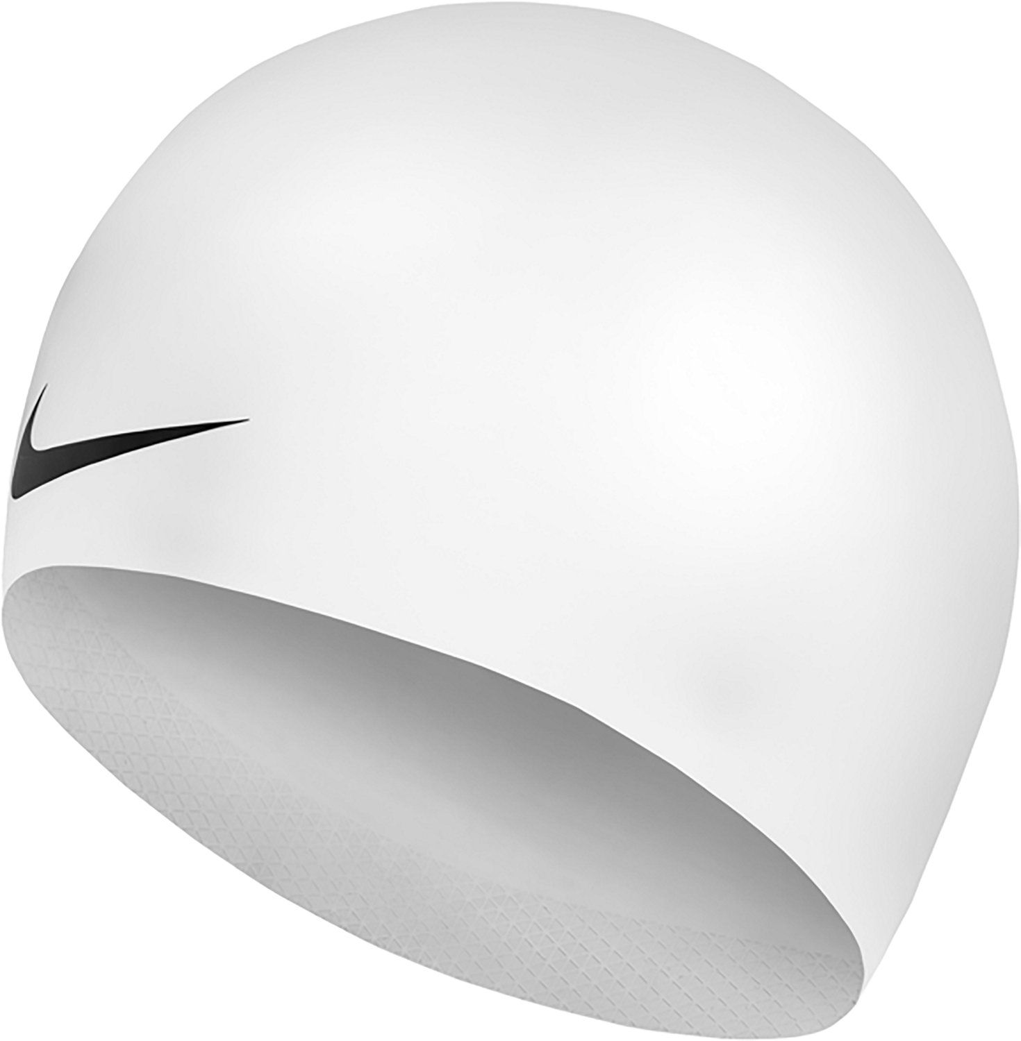 Take on the competition while wearing the Nike Silicone Dome Swim Cap. The 100% silicone construction provides a smooth, wrinkle-free exterior, while the targeted compression points help reduce drag. The interior grip helps keep the cap in place on various head shapes and sizes.