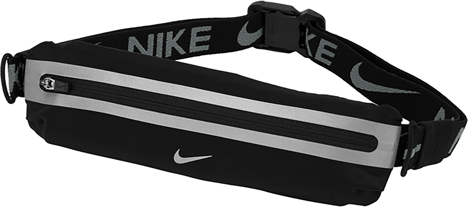 Carry your items on the run with the Nike Slim Waistpack 4.0. Its Dri-FIT technology helps you stay dry and comfortable. The elastic belt can be adjusted to fit comfortably on your run, and its expandable pocket holds onto small essentials. The reflective Nike Swoosh logo on the front.
