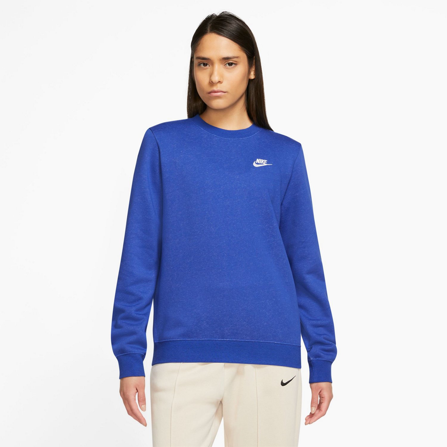 Take on the day in comfy style when you sport the Nike Women's Nike Sportswear Club Fleece Pullover Sweatshirt. The cotton and polyester brushed fleece fabric offers softness and warmth. The ribbed hem and cuffs create a snug fit. The standard silhouette supplies a relaxed, easy feel, while the embroidered logo design adds a classic, stylish appearance to your look.