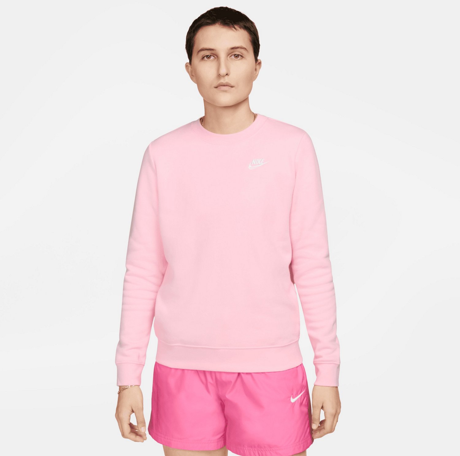 Take on the day in comfy style when you sport the Nike Women's Nike Sportswear Club Fleece Pullover Sweatshirt. The cotton and polyester brushed fleece fabric offers softness and warmth. The ribbed hem and cuffs create a snug fit. The standard silhouette supplies a relaxed, easy feel, while the embroidered logo design adds a classic, stylish appearance to your look.