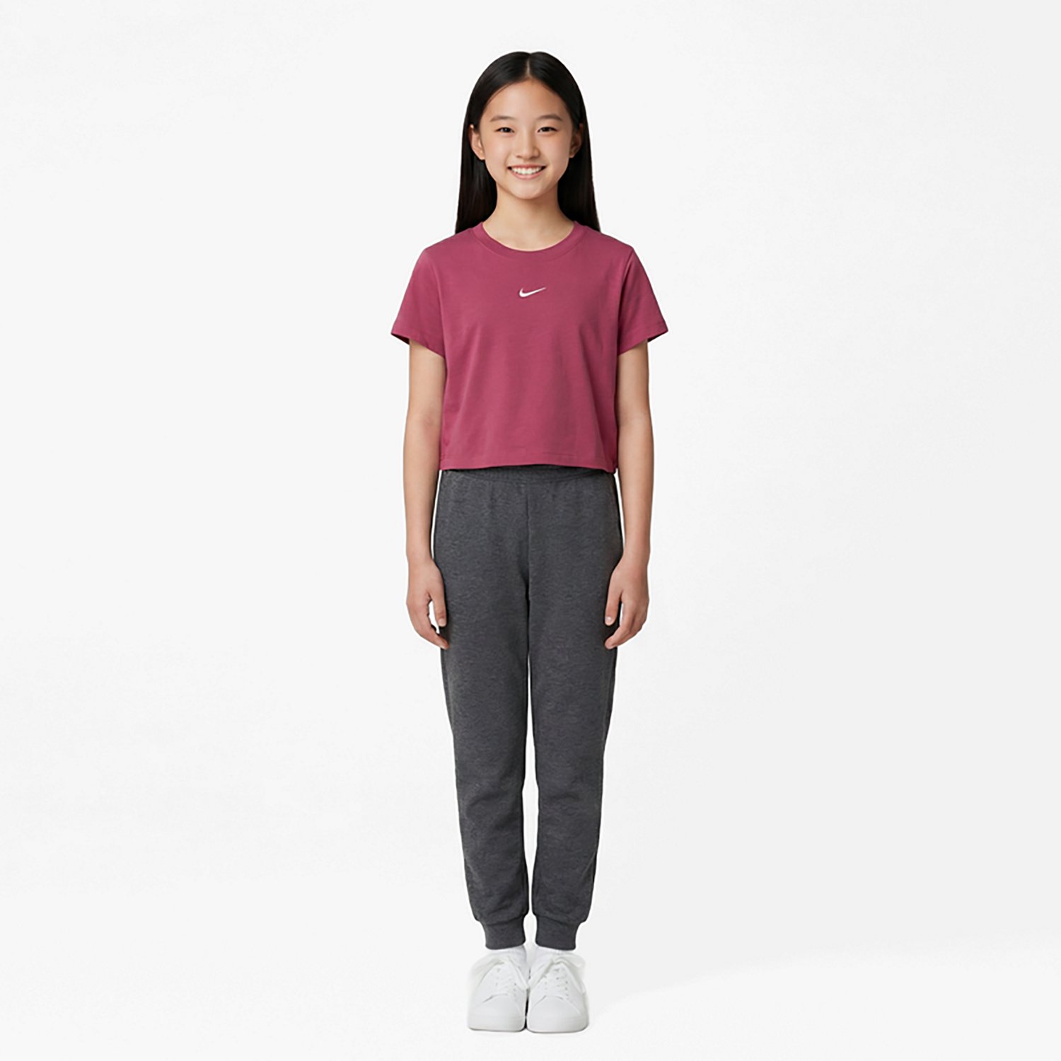Add a stylish twist to everyday comfort with the Nike Sportswear Girls' Big Kids Cropped T-Shirt. Crafted from a soft and stretchy jersey knit, this tee offers a lightweight feel that’s perfect for any activity. The subtle cropped design gives it a fun and modern vibe, making it a versatile pick for layering or wearing solo.