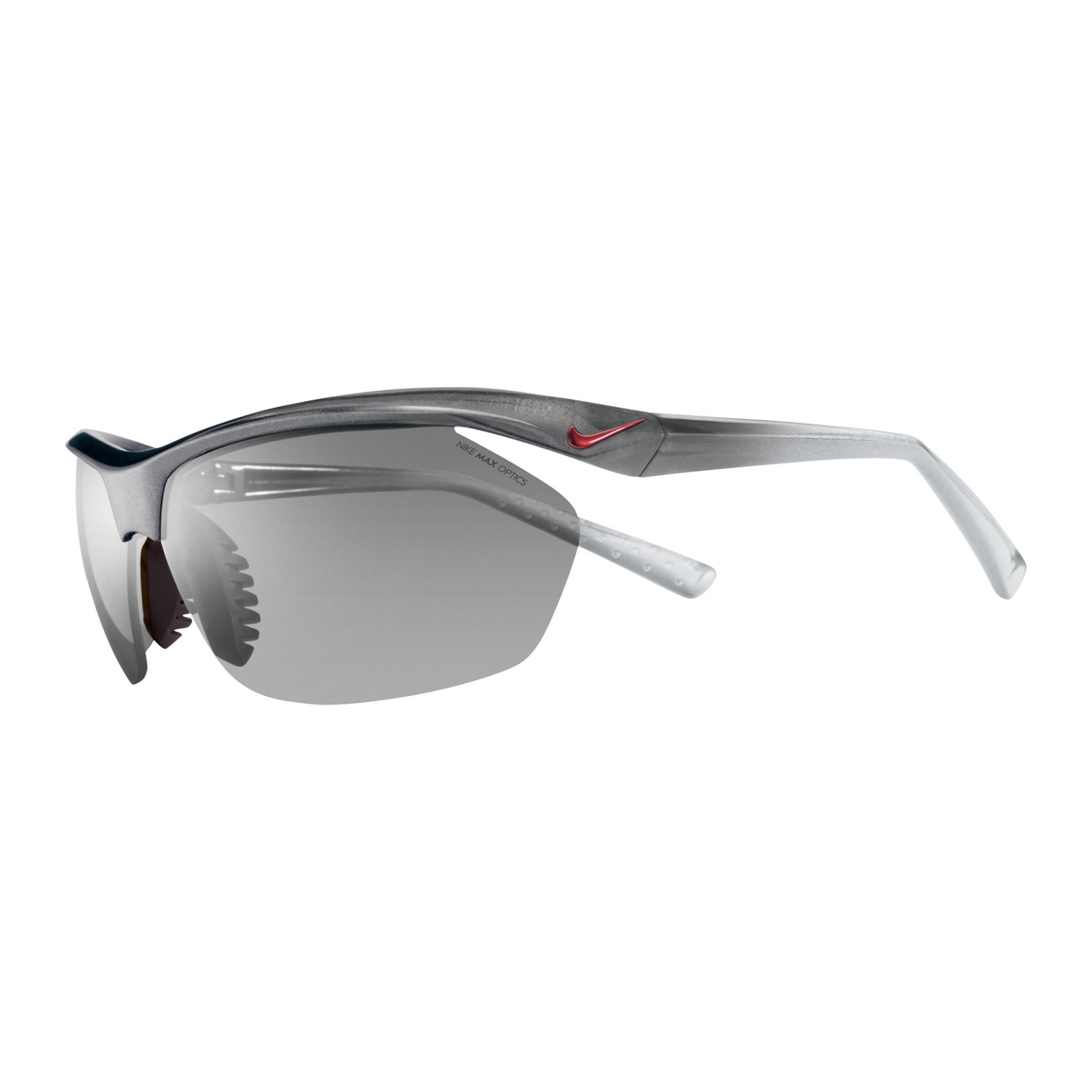 Log some miles on a sunny day while wearing the Nike™ Tailwind Running Sunglasses, which feature Nike™ Max optics for visual clarity and a Flying lens design to help keep the lenses from fogging up. The secure-wrap temple arms with Waffle tread patterns provide grip, while the adjustable, ventilated nose bridge helps improve airflow. Cam-action spring hinges.