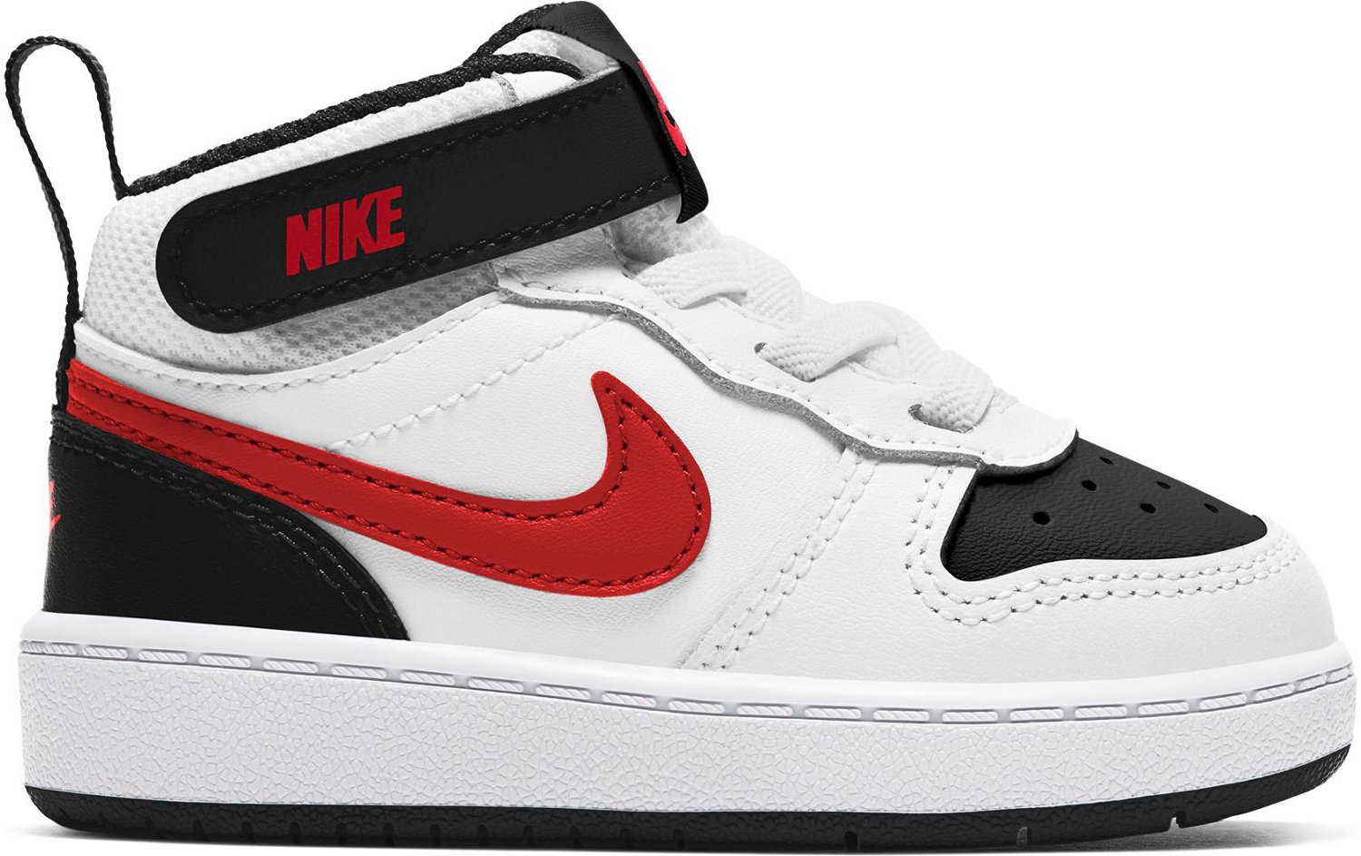 He'll look like a star off the court with the Nike Toddler Kids Court Borough Mid 2 Shoes. Crafted with leather uppers, these shoes afford durability, while the grooves in the outsoles promote flexibility. The 2 hook-and-loop straps allow for easy on and off, and the ankle and tongue padding offers cushioned comfort.