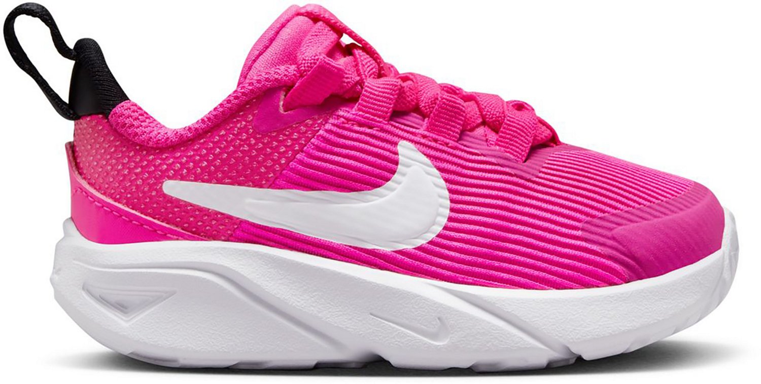 Your little one can start their running journey at a young age sporting the Nike Toddler Kids' Star Runner 4 Running Shoes. The vertical mesh uppers promote airflow, while the foam-injected phylon midsoles cradle your feet in support and comfort. A heel-hinged system and seams on the tongues both allow you to customize the fit and slip into the shoes with ease, and the rubber outsoles help promote traction on various surfaces.