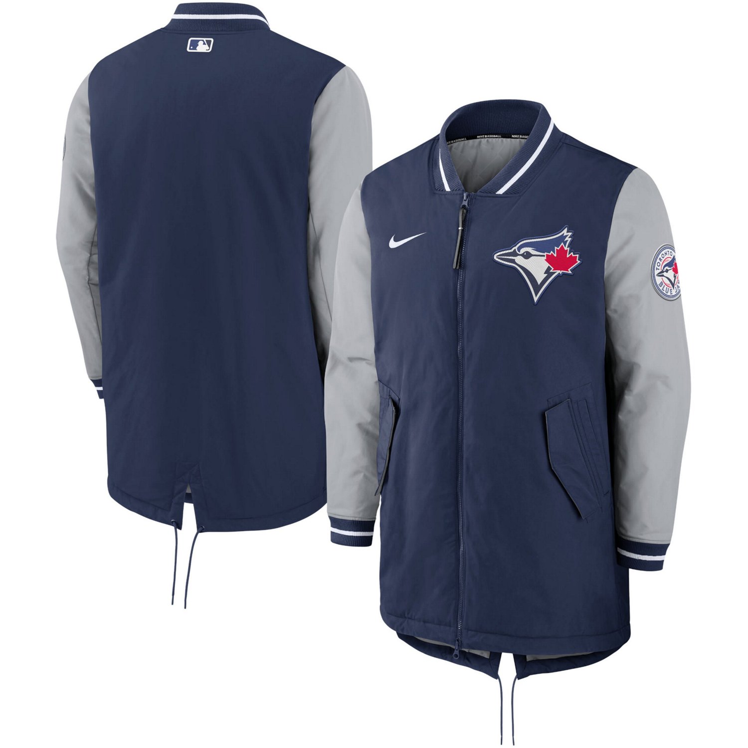 Gear up like the top Toronto Blue Jays players with this Nike Dugout jacket Loads of pockets allow you to tuck small essentials away and the standup collar offers extra coverage With a heavyweight design this full-zip features a quilted lining for added warmth and integrated Nike Repel technology to ward off rain or moisture The striking Toronto Blue Jays graphics make this jacket a must-have for any fan facing chilly temperatures